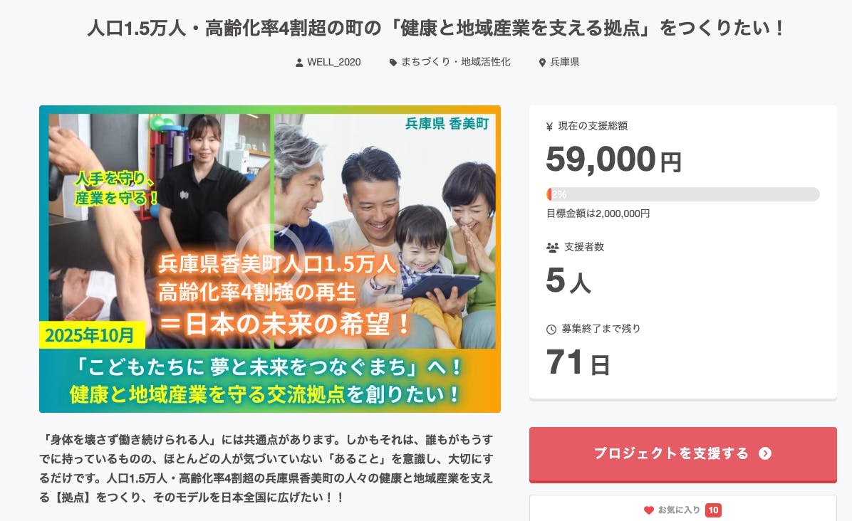 クラウドファンディング開始から6日が経過し、現在5名のあなたから59,000円のご支援をいただいております。ありがとうございます!