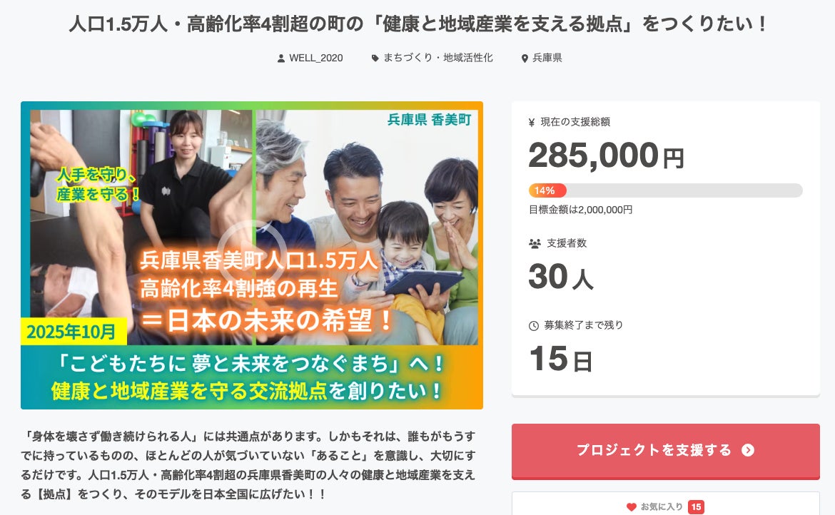 人口1.5万人・高齢化率4割超の町の「健康と地域産業を支える拠点」をつくりたい!