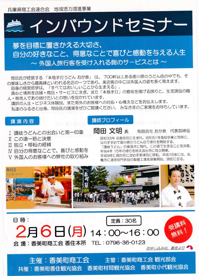 5月23日、本格手打ちうどん「おか泉」の代表 岡田文明様から【拠点 ライト企業スポンサーロゴ掲載(直系10cm)+田淵との対談動画付き】のご支援をいただきました!