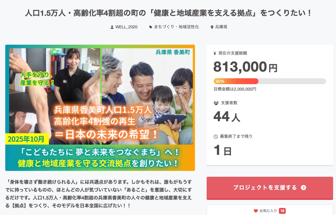 人口1.5万人・高齢化率4割超の町の「健康と地域産業を支える拠点」をつくりたい!