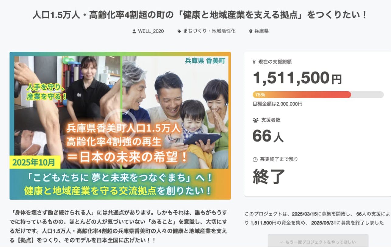 66名のあなたから1,511,500のご支援をいただいき2025/05/30でクラウドファンディングが終了となりました。改めて感謝申し上げます。