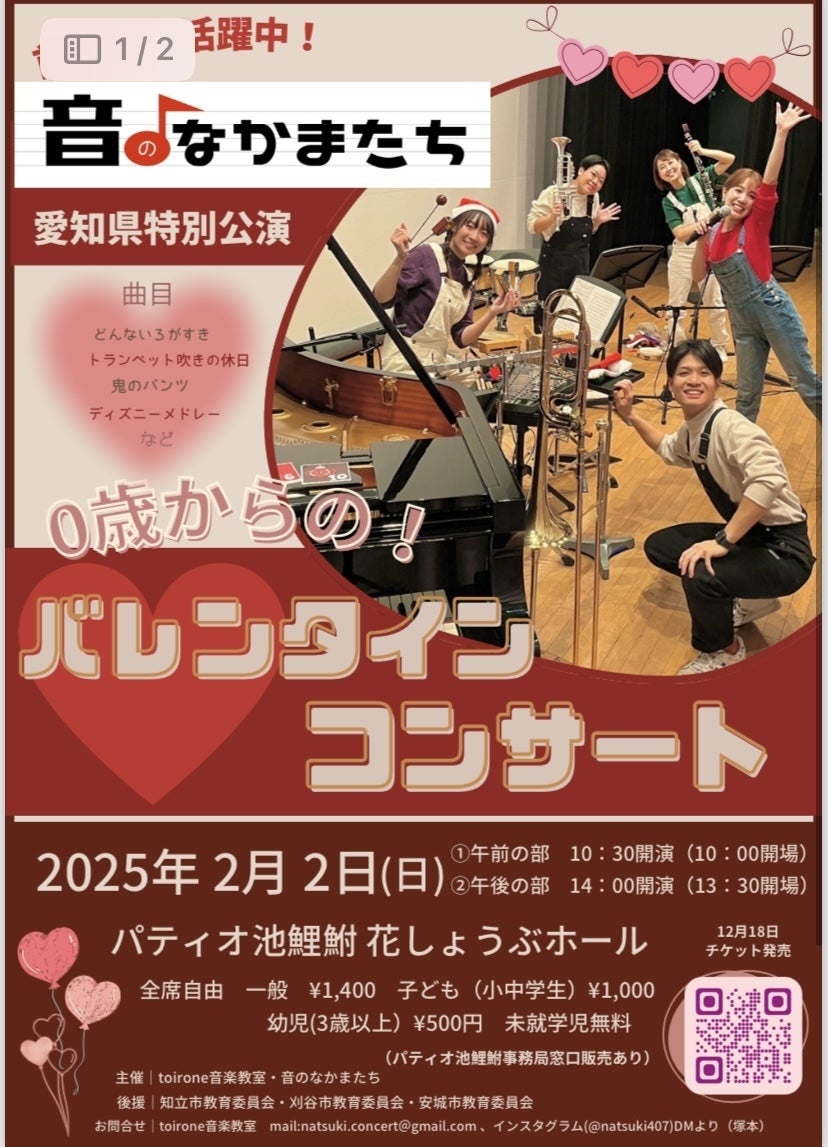 2月2日バレンタインコンサートのご招待チケットを愛知県にお住まいのご友人にプレゼントしたいと