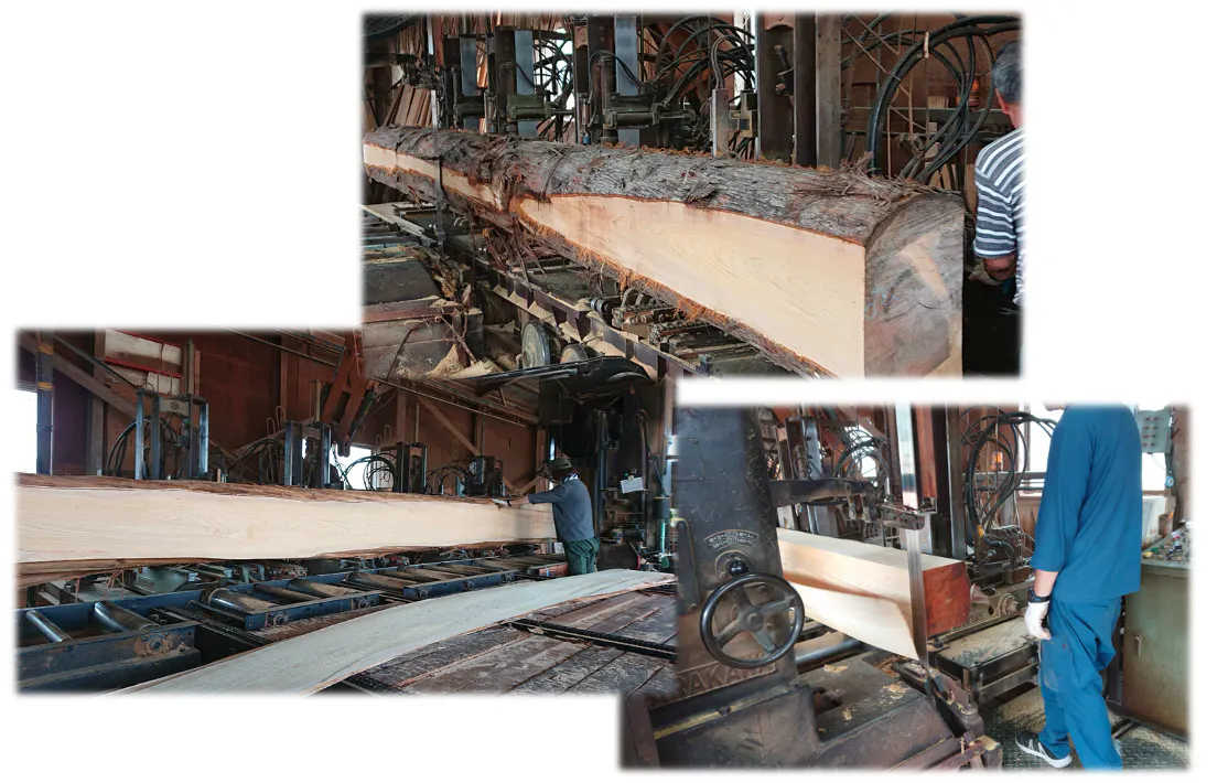 創業当時から、能登ヒバと呼ばれる奥能登独自の材木加工を得意としております。能登ヒバは奥能登の高温多湿の夏、寒さの厳しい冬の気候風土に耐えながら成長します。そうして成長した木材は、主に殺菌効果のあるヒノキチオールを多量に含み、不朽菌、カビ、ダニ、白アリ、湿気に強い特性を持ちます。