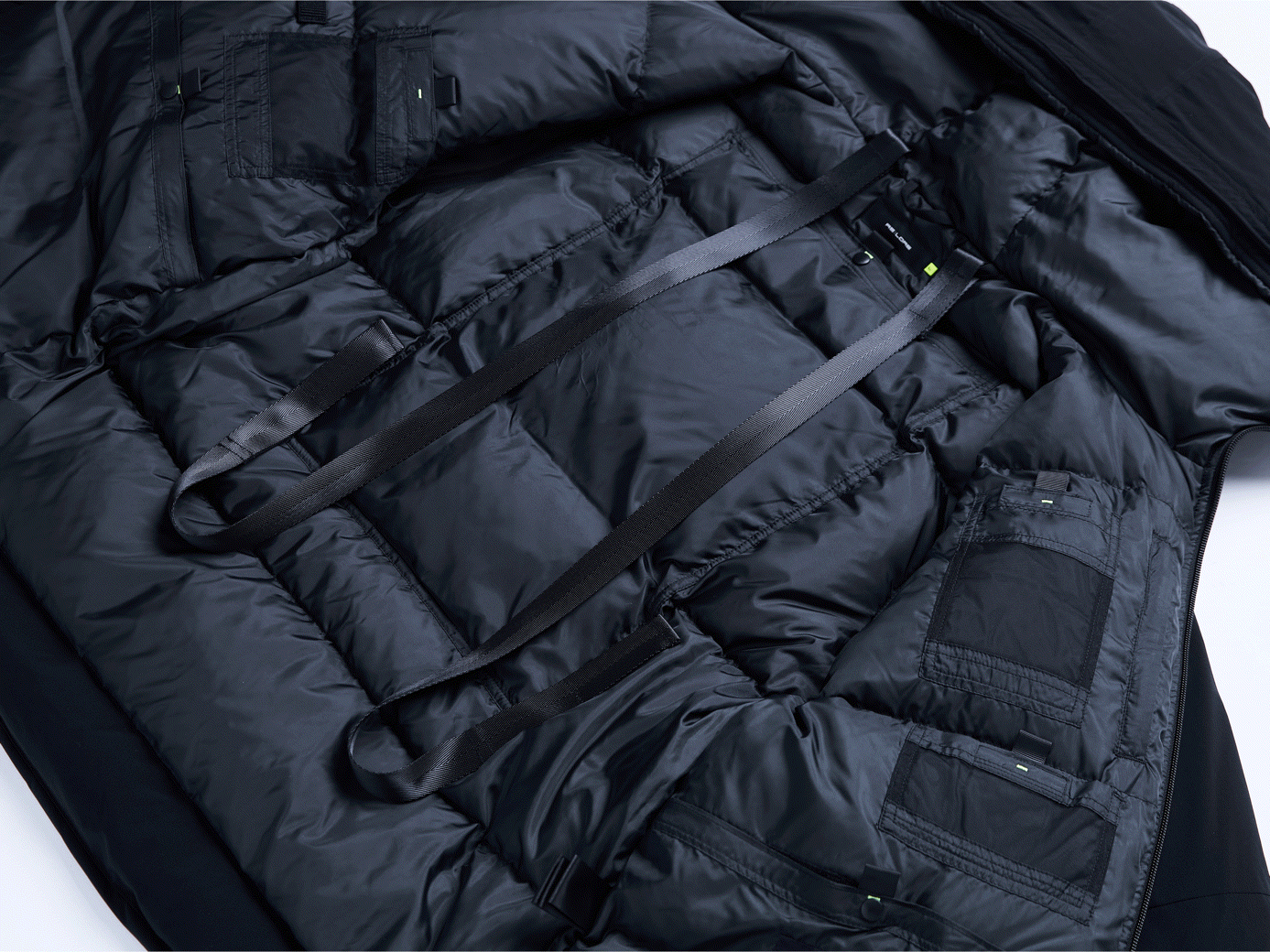 また表地、裏地の内側にダウンパックと呼ばれるダウンの吹き出しを内側で抑える内部構造を採用。