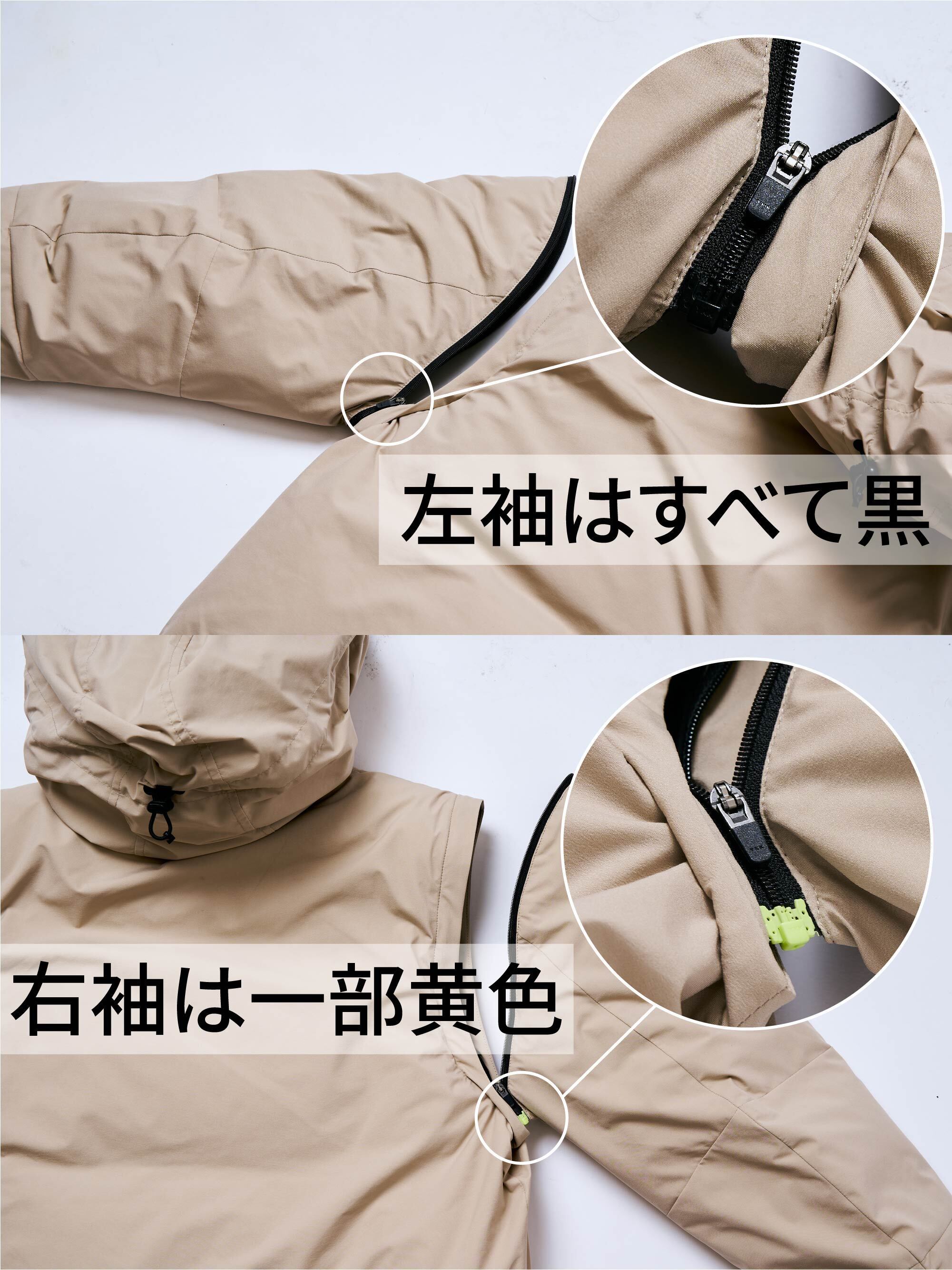 取り外した袖を簡単に取り付けられるように左右でファスナーの色を一部変えています。