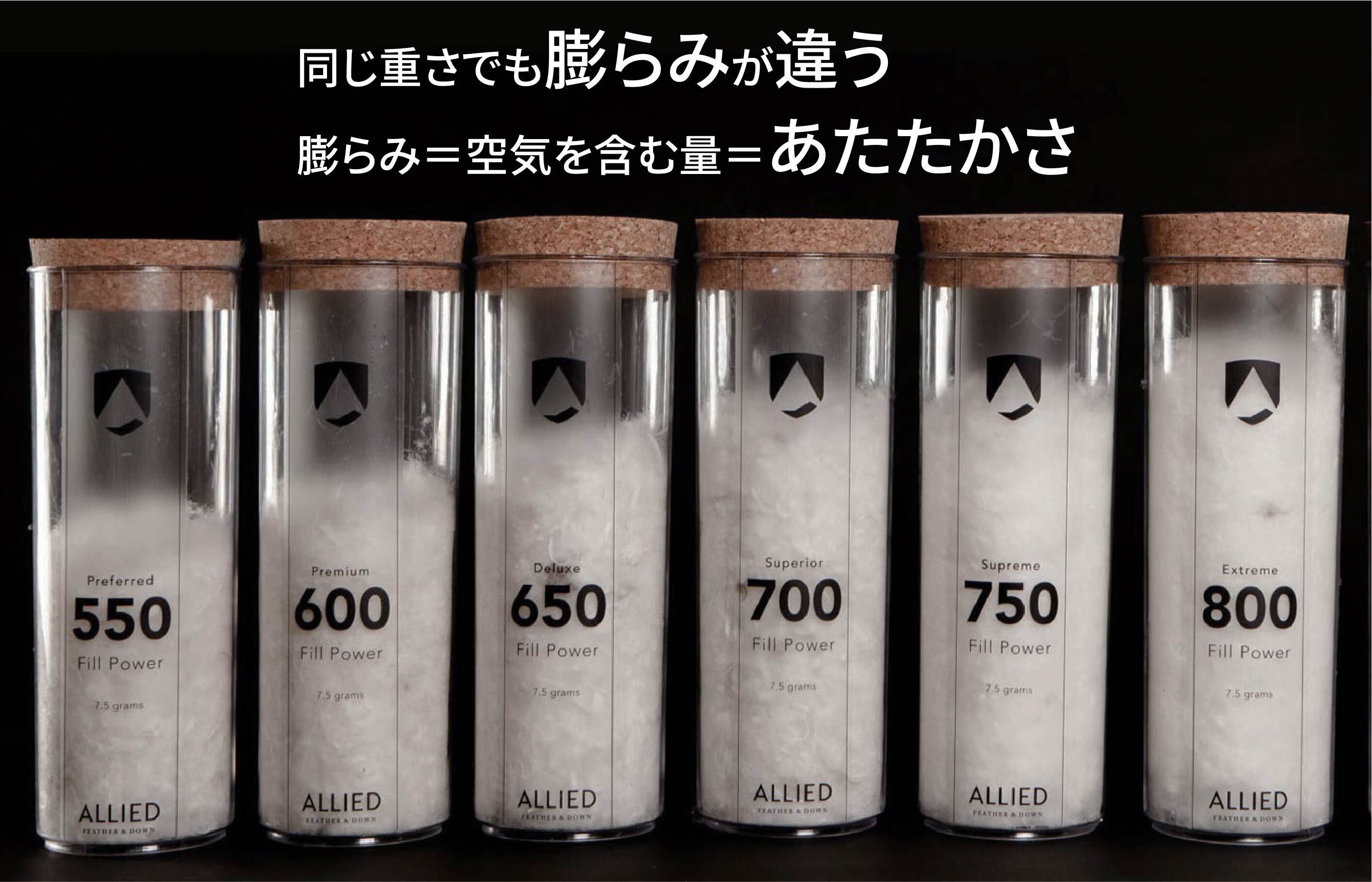 環境保護や動物愛護に積極的に取り組む『ALLIED FEATHER & DOWN社』の保温性に大変優れた800FP(フィルパワー)の高品質な高級ダウンを贅沢に約200g(Mサイズ)も封入しました。