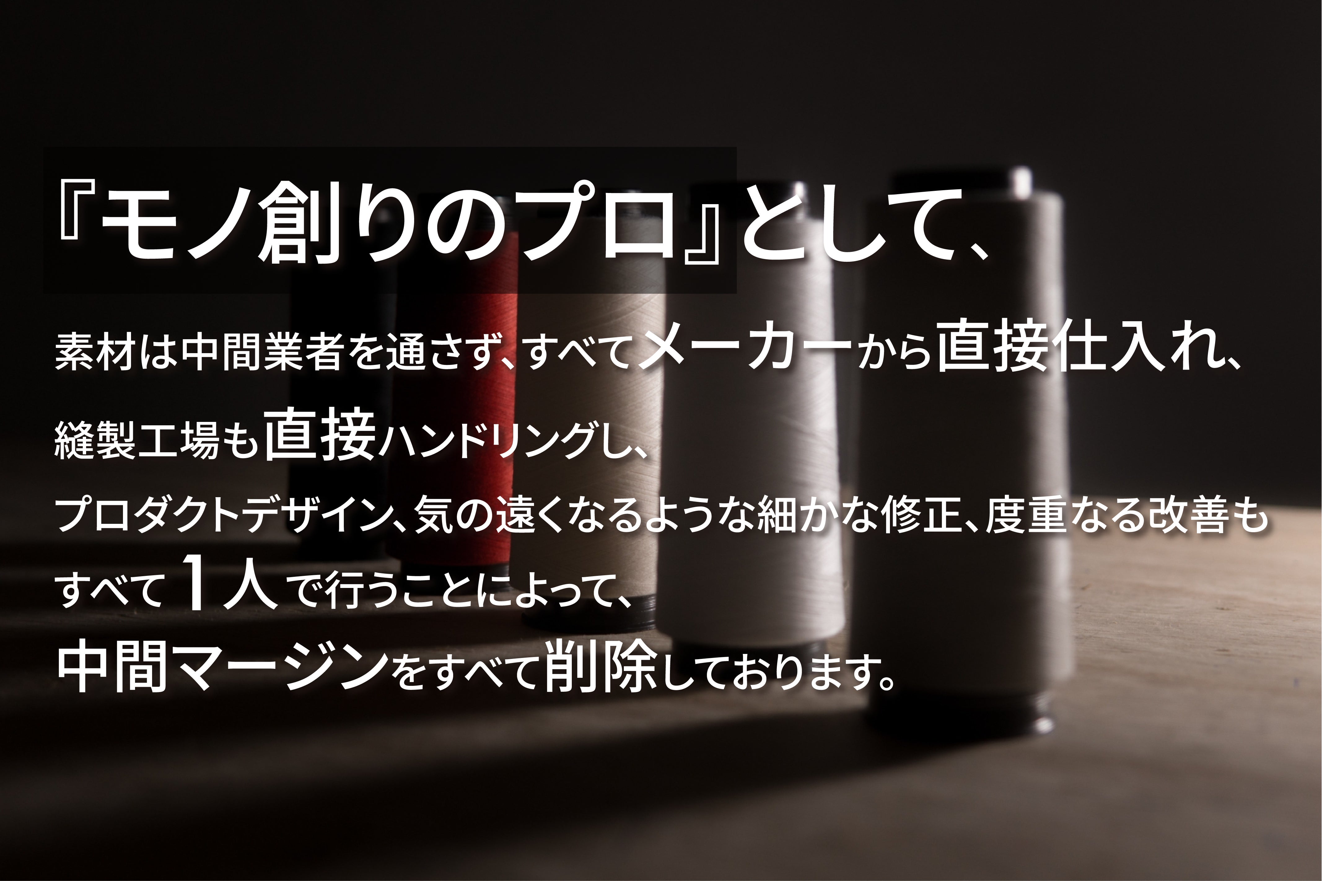 ※セールを行わないため、一般的なアパレルの2倍以上の高原価率での「限界プライス」が実現でき、その結果「価格以上の価値」をご提供できる仕組みとなっております。