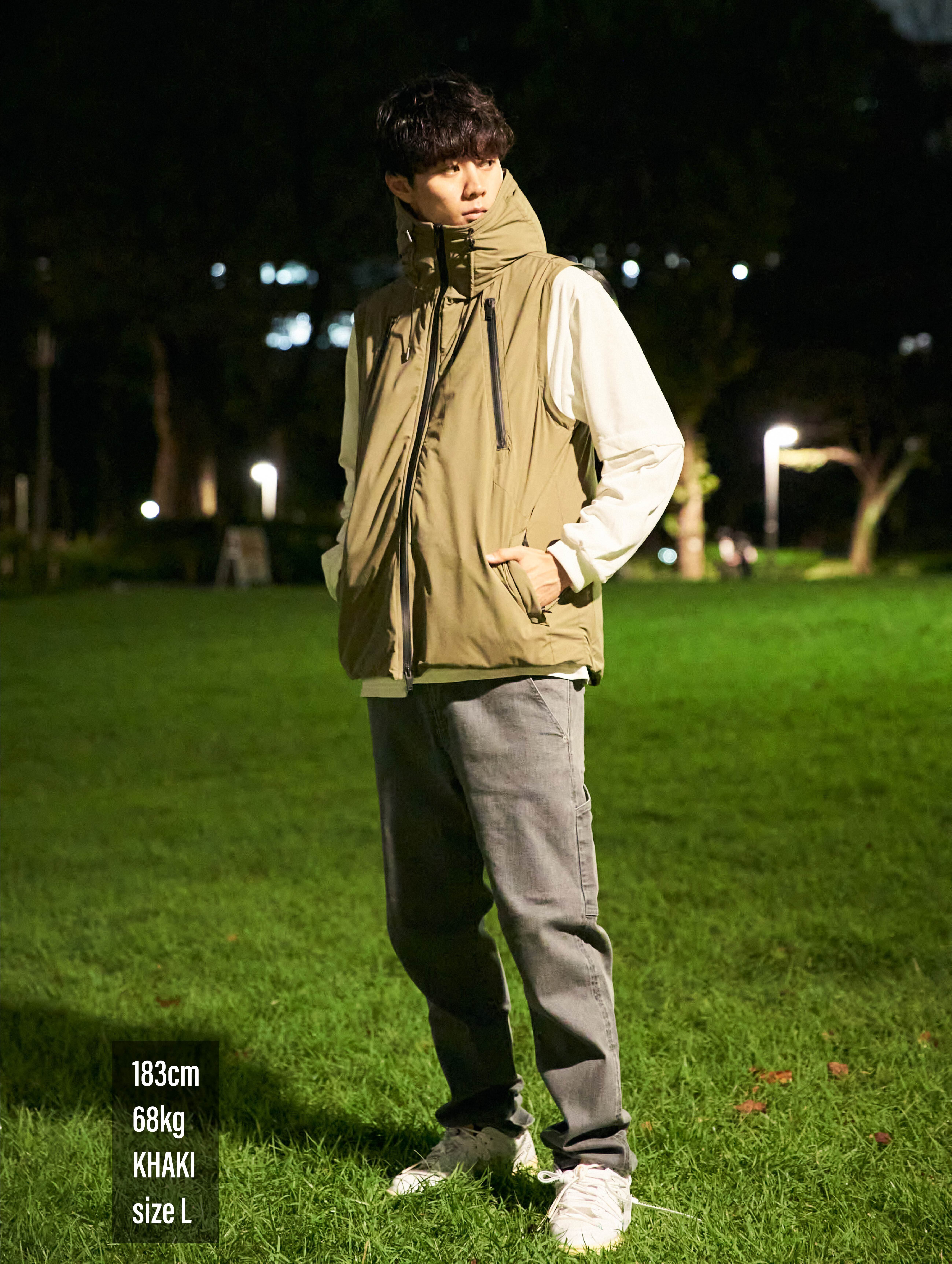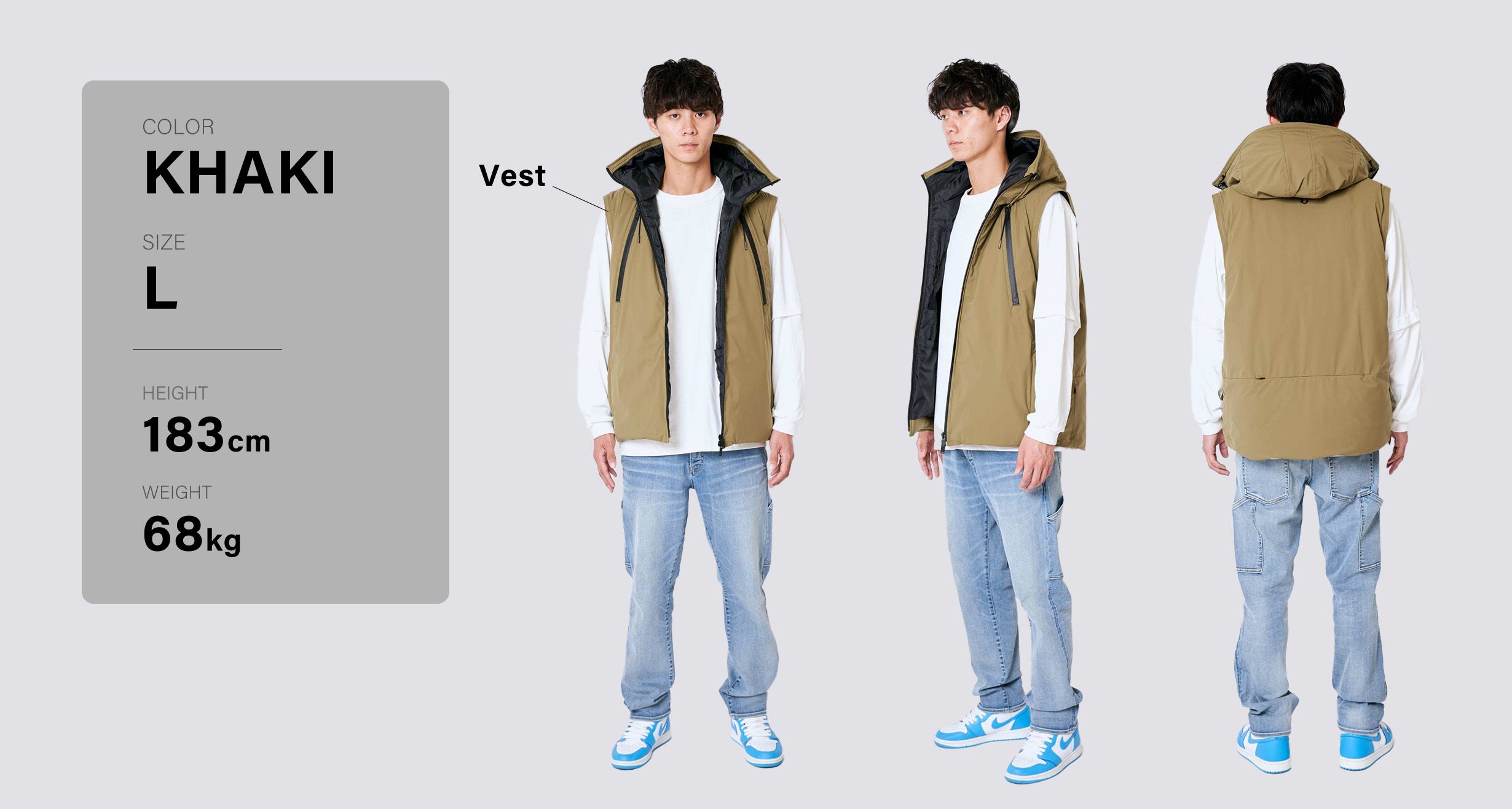 以前から多数リクエストをいただいていた『手ぶらダウンベスト』を、2WAYで実現することができました。