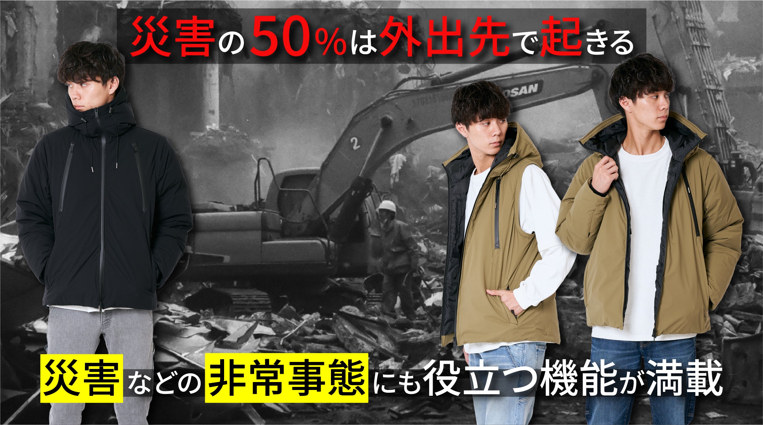 手ぶらダウンは、この圧倒的な保温力に加えて、大容量の収納ポケットが備えられていますので、防災対策としても大活躍してくれます。