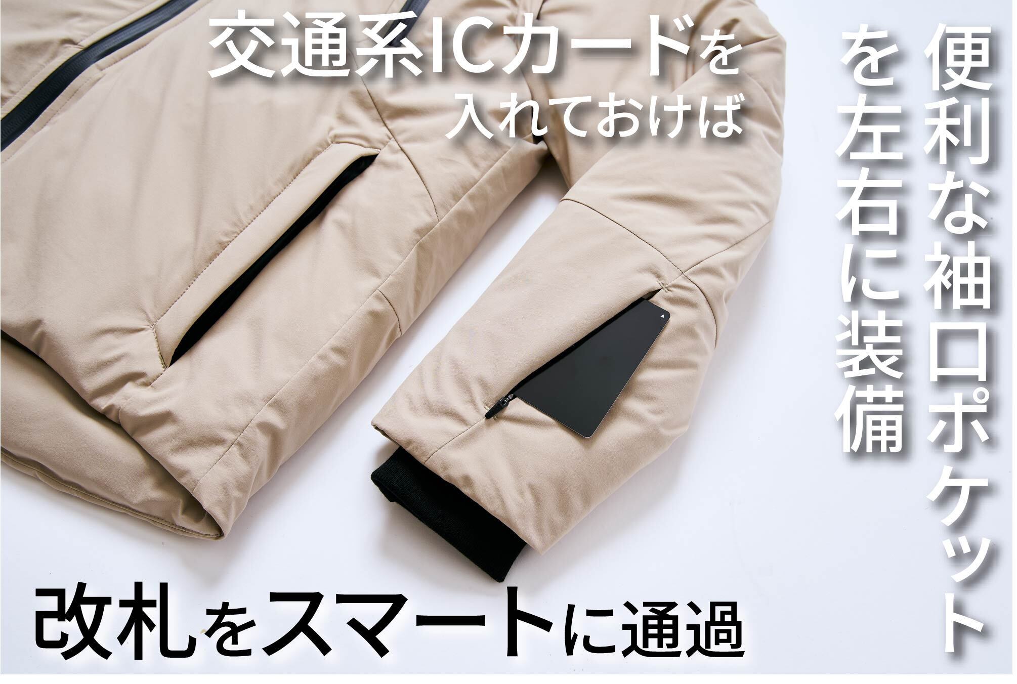 袖口のポケットに交通系ICカードを入れておけば、改札をスマートに通過できます。
