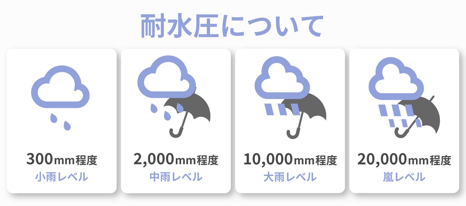 傘の耐水圧は250mm程度と一般的に言われているので、その防水性の高さがお分かりになるかと思います。