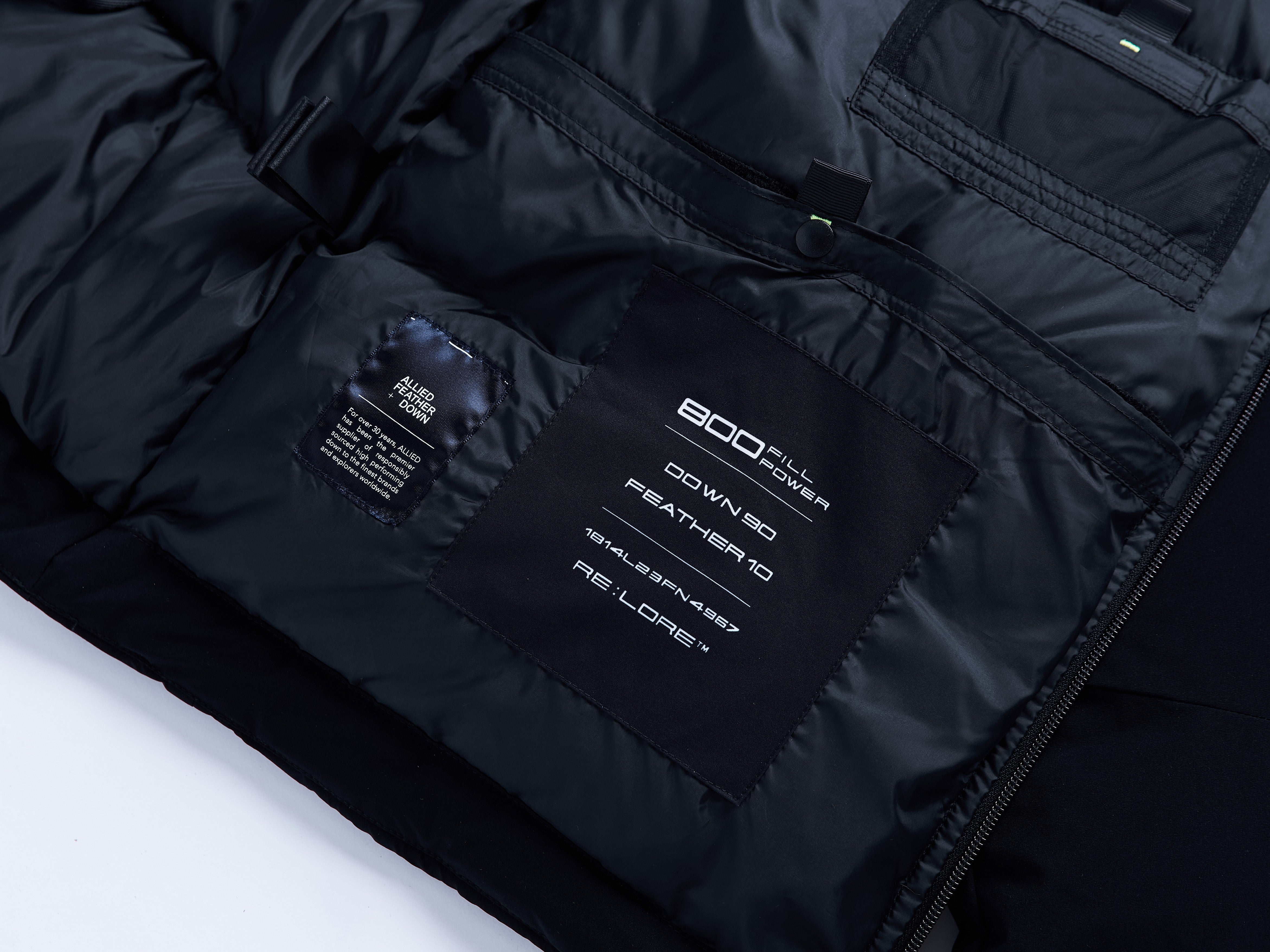 環境保護や動物愛護に積極的に取り組む『ALLIED FEATHER & DOWN社』の保温性に大変優れた800FP(フィルパワー)の高品質な高級ダウンを贅沢に約200g(Mサイズ)も封入しました。