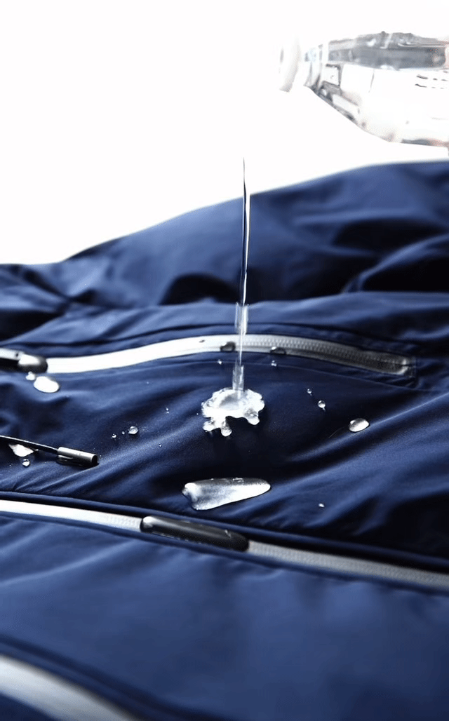嵐にも耐えられるレベルの耐水圧:20,000mmの日本製のハイスペック素材を採用。