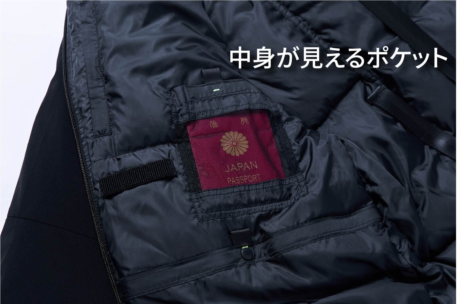 身頃裏(大部分)は超軽量・高密度生地を使用することで、全体的な『軽さ』を確保し、袖裏は袖通しの良い滑らかな風合いの蓄熱・静電気防止裏地にすることで『役立つ機能性』を兼ね備えました。