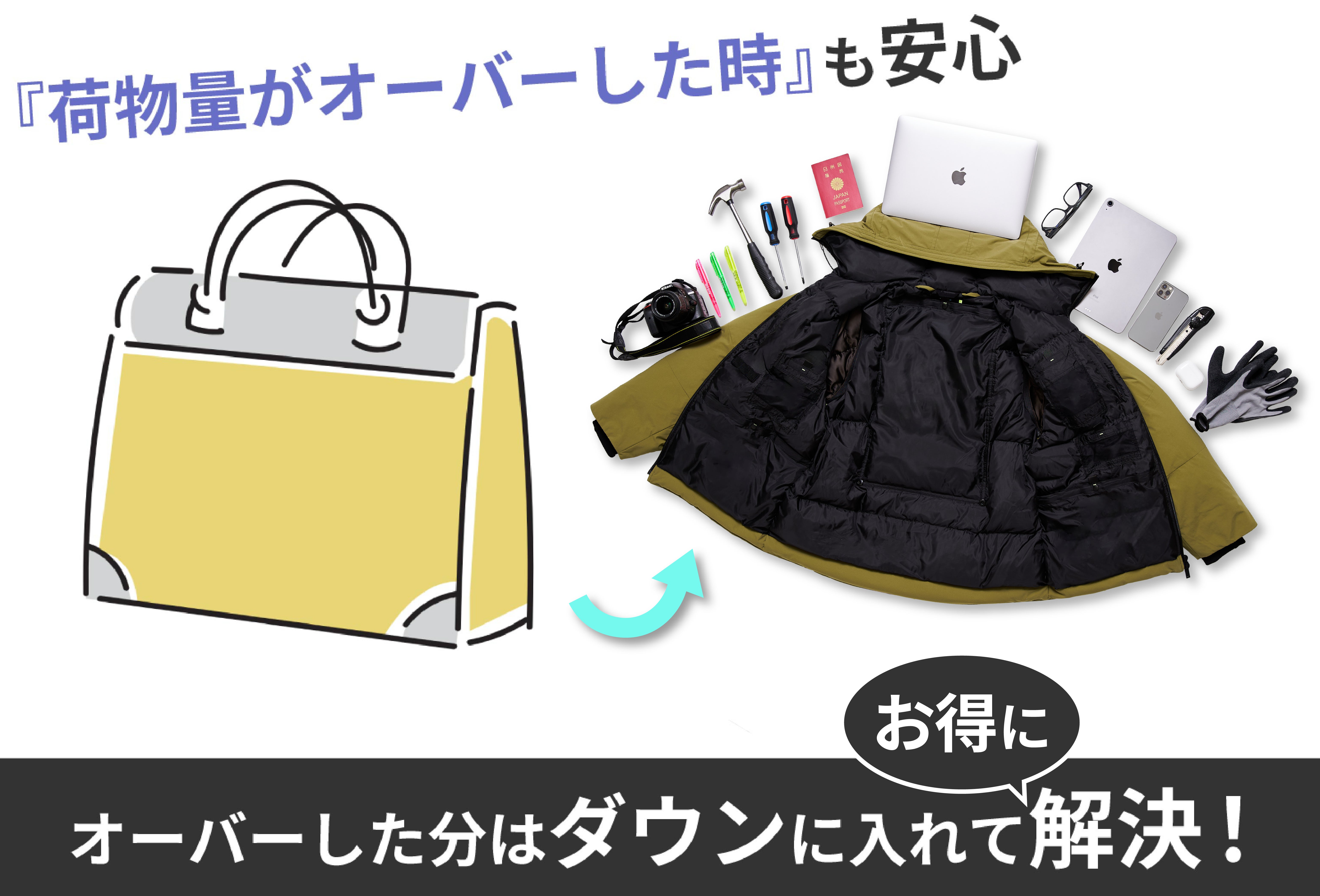 空港にて無料で預けられる荷物量を超えてしまった場合も、手ぶらダウンに荷物を入れることで「お得」に解決できます。