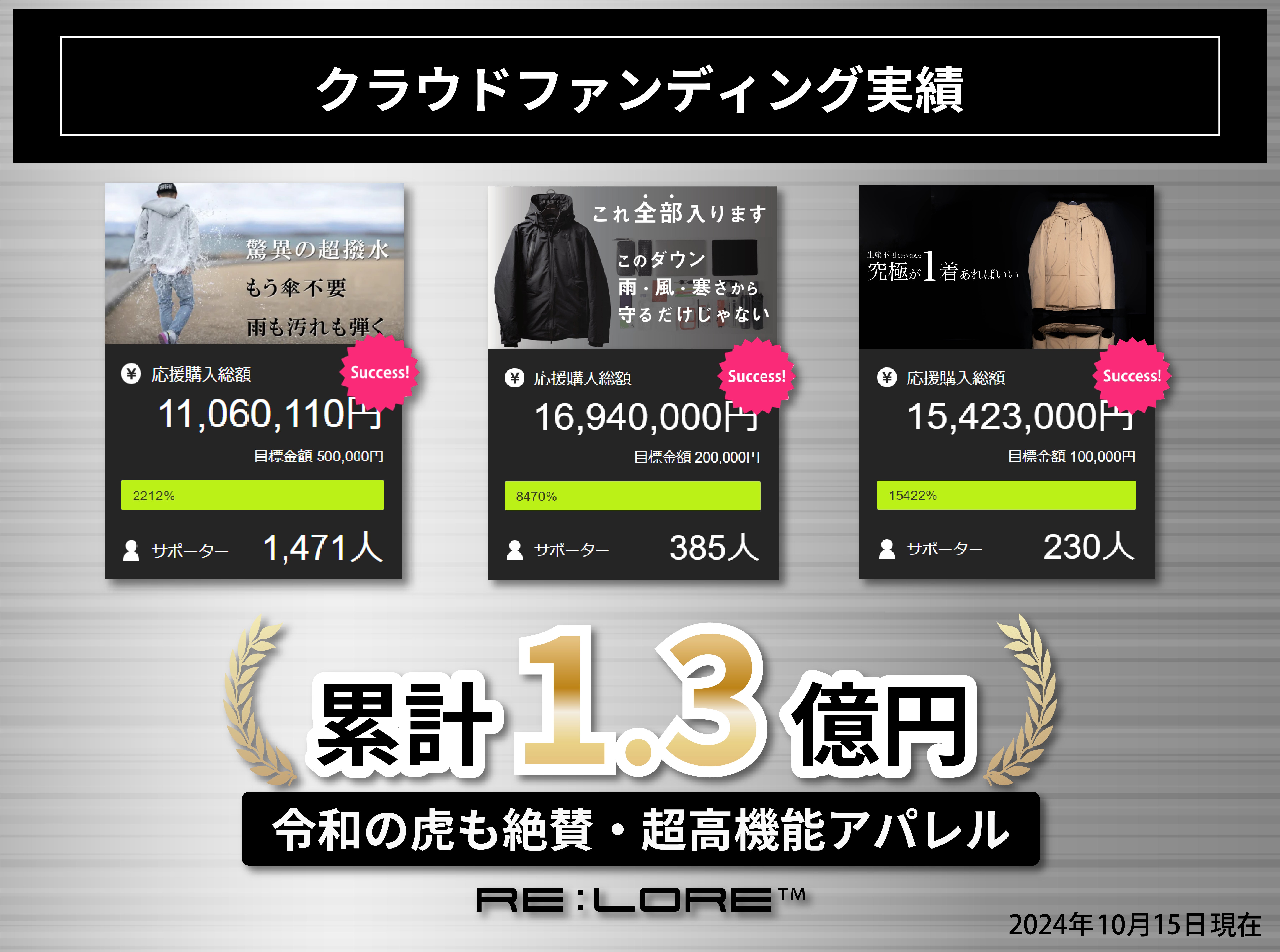 RE:LORE™というブランドにご賛同していただき、完全ALLを達成しました。