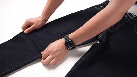 実際に『この見た目で伸長率90%以上』であることをデニム生地のプロである生地メーカー様に伝えると、必ず「スゴイ!」と驚かれます!