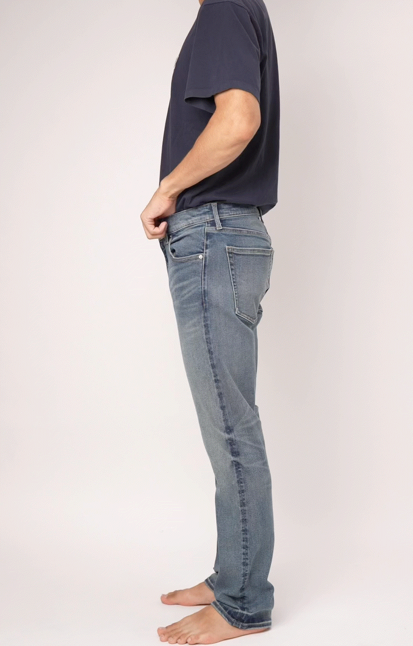 2倍のび〜るGUM-GUM JEANSだから、ヴィンテージ感のある重厚な見た目と、相反する軽快で自由な着用感の両立を実現。