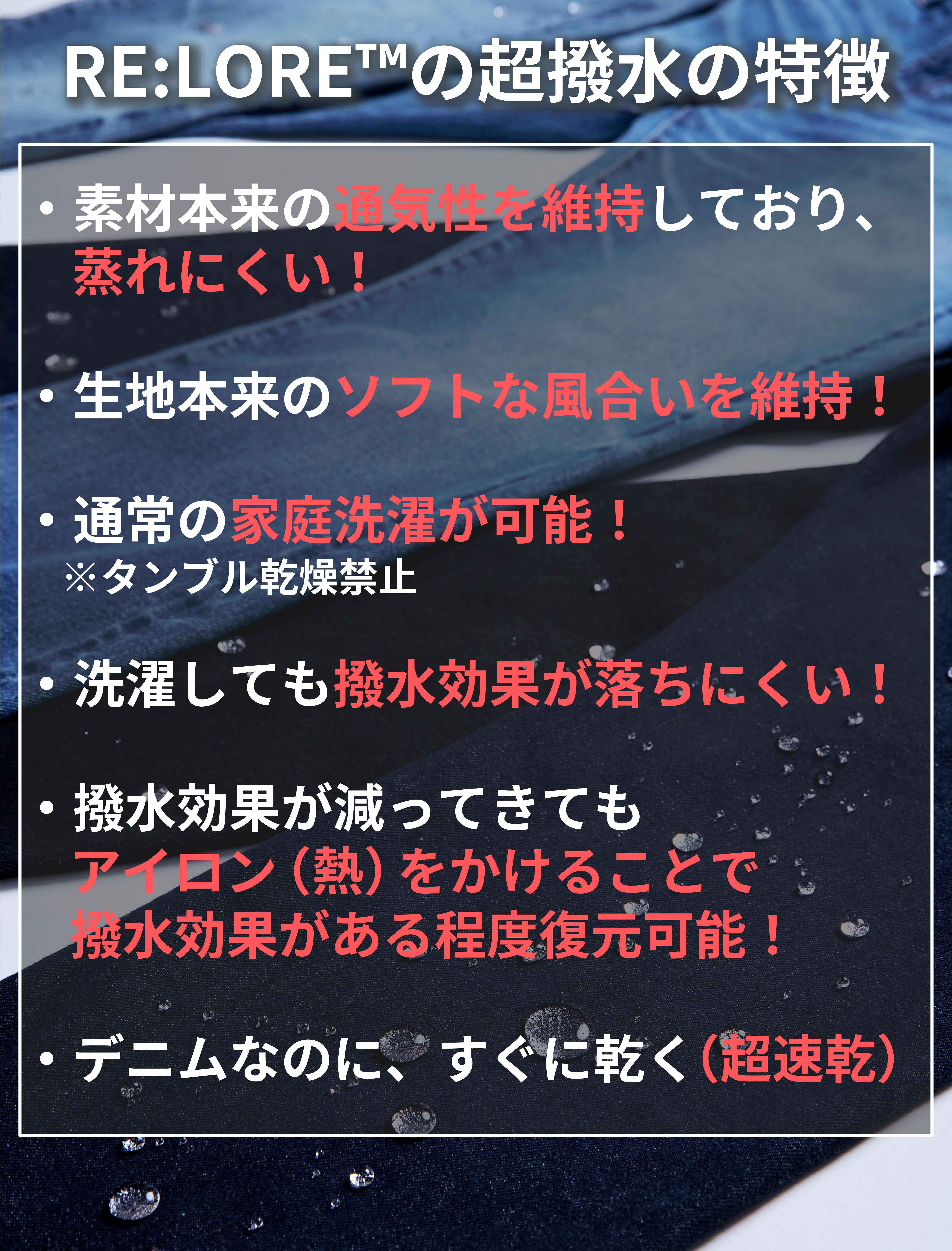 さらに、汚れにくい超撥水や、動きやすいストレッチ性も同様にあなたの手助けになってくれると期待しています。