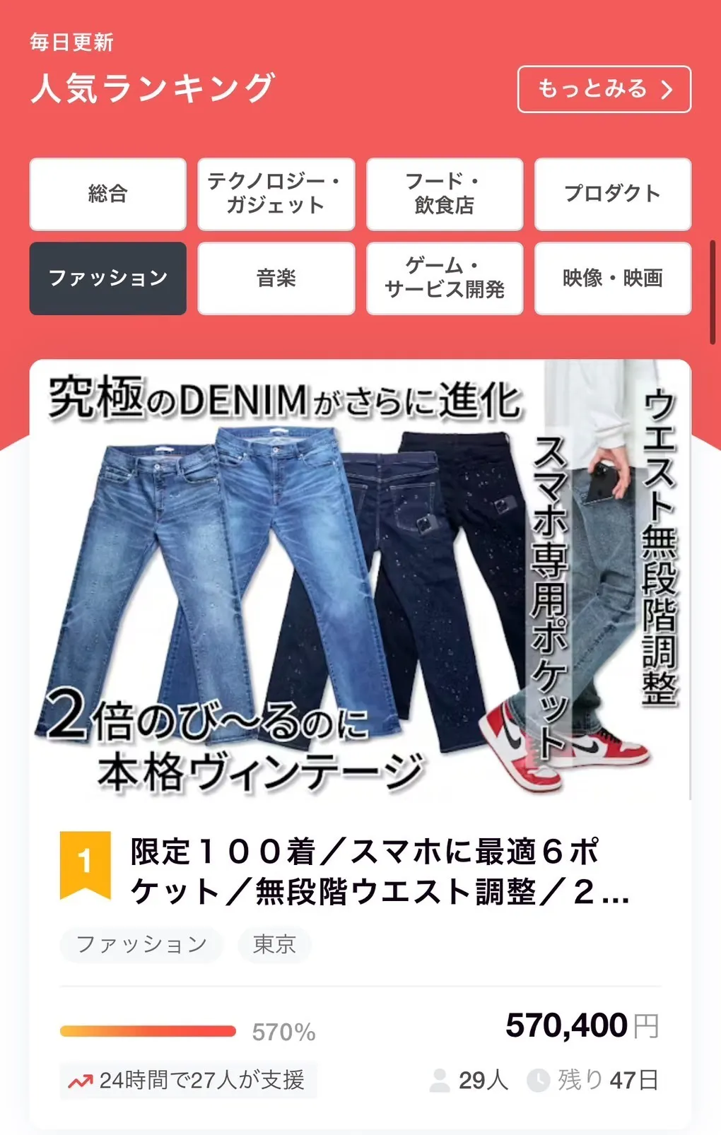 おかげさまで「GUM-GUM JEANS 3.0+」は、デイリーランキング1位を獲得することができました!