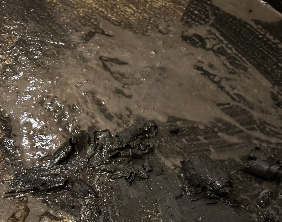 床は黒色だと思っていたのですが、分厚い汚れの層をまるでローラアイスかのように削り取って何度も強力な洗剤で擦ってみると…まさかの白。これには笑っちゃいましたね。