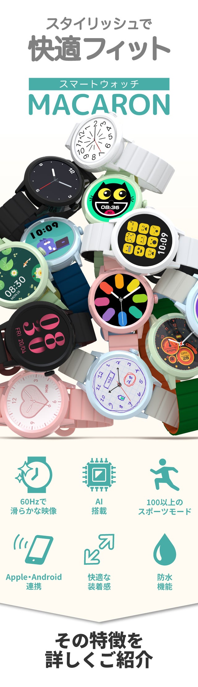 A.はい。KAVVOのスマートウォッチには、スタイルや好みに合わせてさまざまなデザイン、色、独自の写真アルバムで文字盤をカスタマイズするための何百もの選択肢が用意されています。