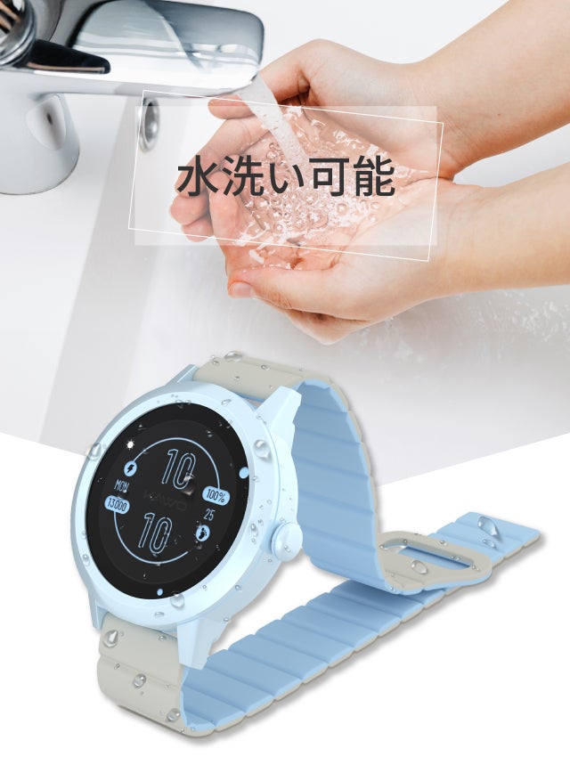 シリコン製のベルトは柔軟性があり、腕にフィットしやすいため快適な装着感を提供します。