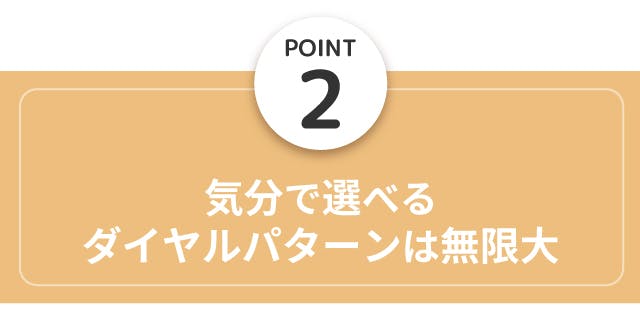他にもキュートな文字盤が備わっており、その日の気分で好きなものをお選びいただけます。