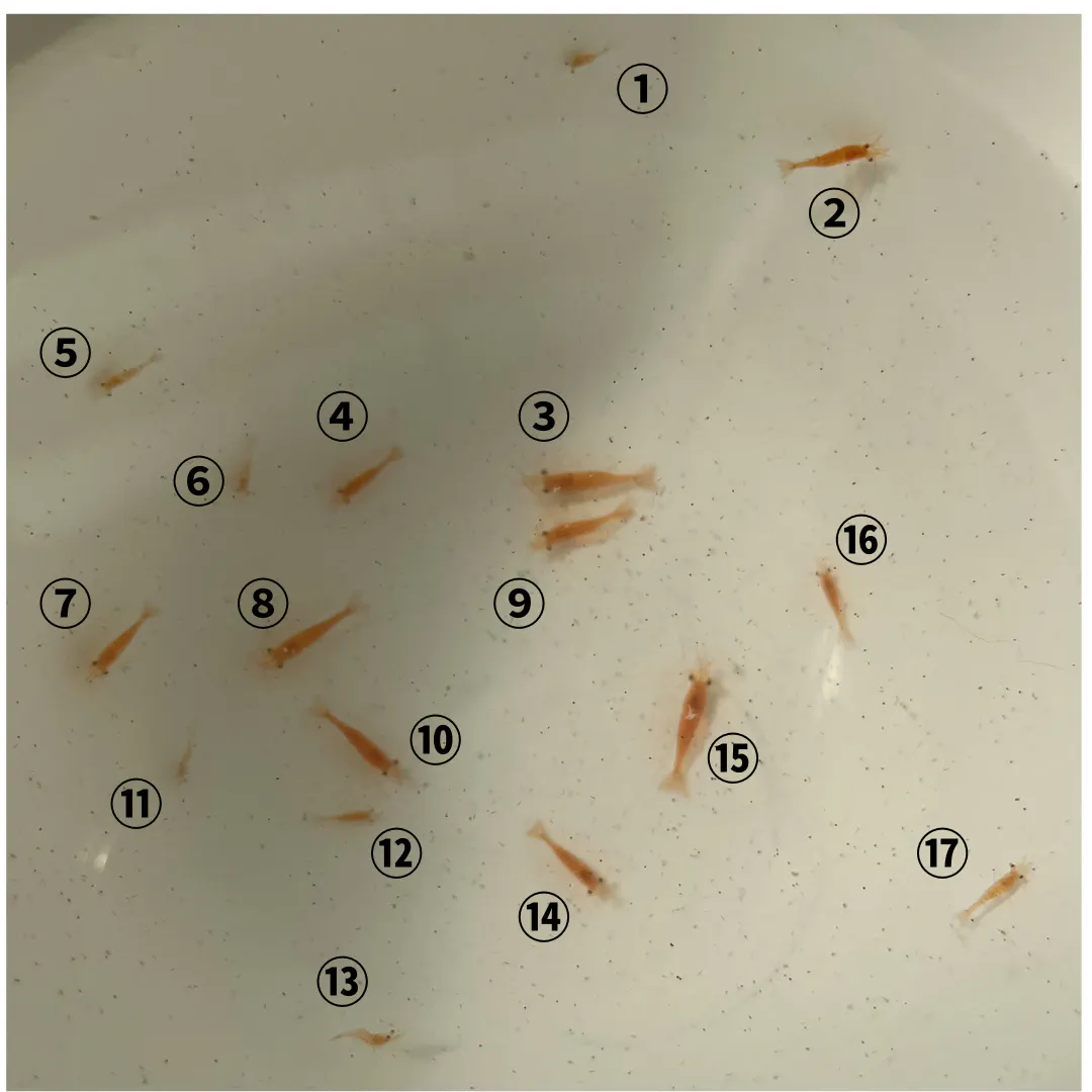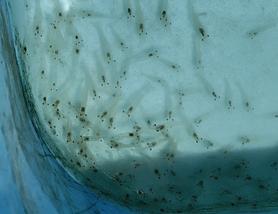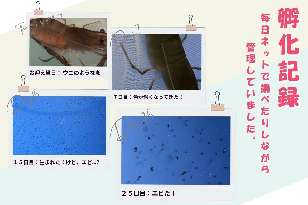 回数を重ねるうちに、取れる稚エビの数は増えていき、最終的には約1,000匹にまで増やすことができました。