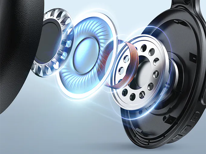 40mm大口径ドライバーで臨場感あふれるサウンドが楽しめます。イヤホンと違い耳を覆うように装着するためダイレクトに音を感じられるほか、遮音性も高く、音楽に集中できます。