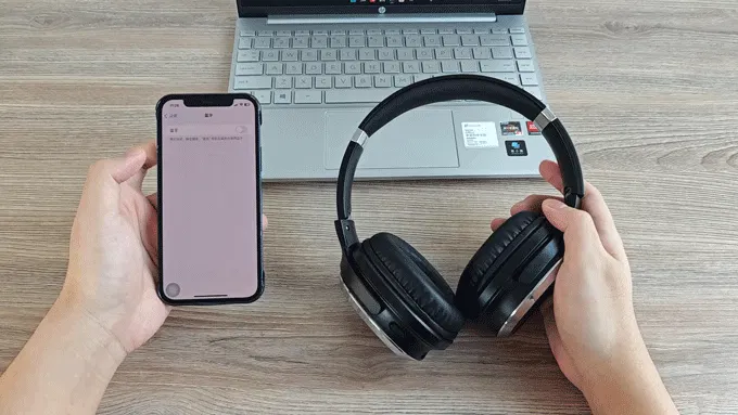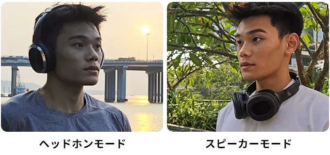 見た目はヘッドホンだが...イヤーカップを外向きに回転させると、大きな音が出せるスピーカーになります。
