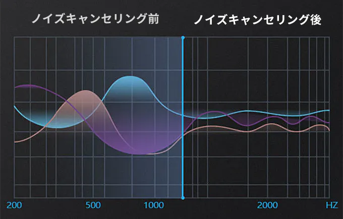 アクティブノイズキャンセリング(ANC)機能が搭載されており、周囲の雑音を大幅に減らし、電車などの騒がしい環境でも、静かな空間を創り出し、没入感のある音楽体験を提供します。