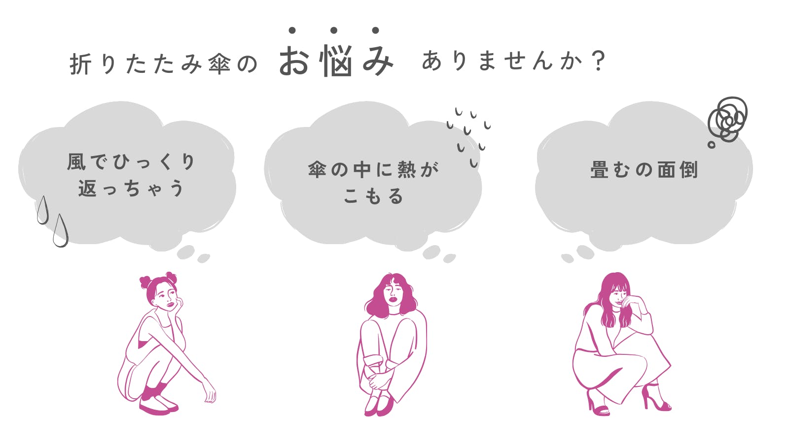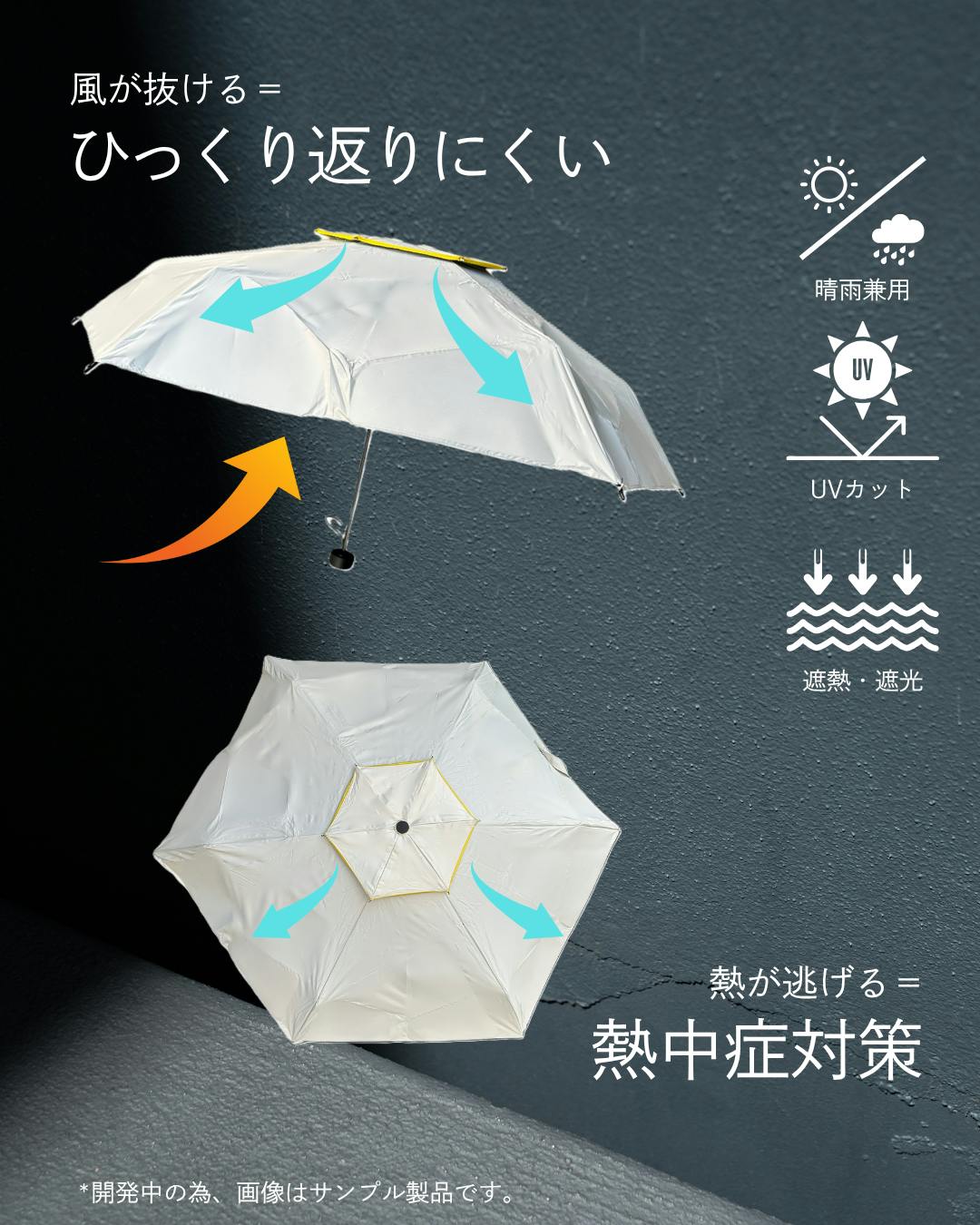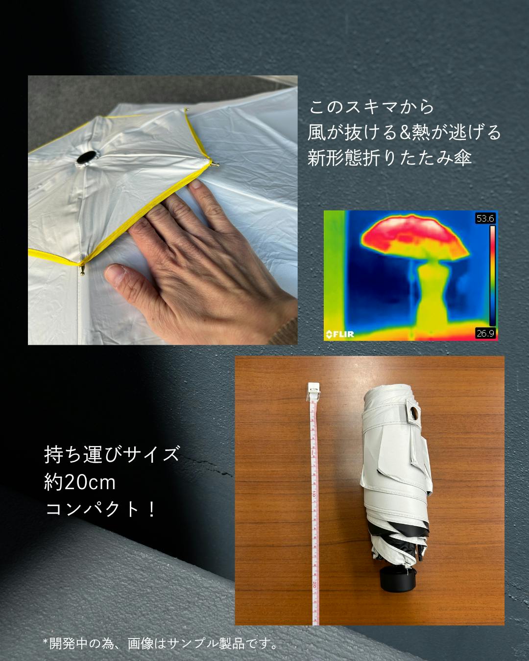 新機構【折り畳まない折りたたみ傘】で不便を解消、熱中症・豪雨対策の新形態