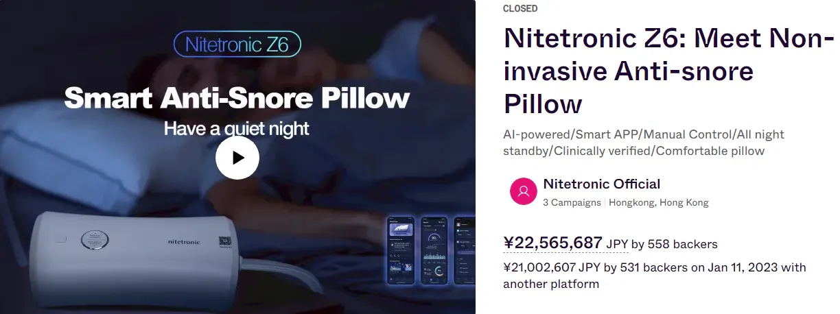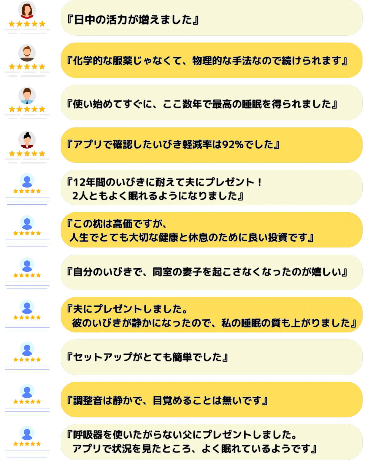 わたしの父(70代)と夫(50代)はいびきがひどく、呼吸が止まったように見える瞬間も少なくはなく心配が続いていました。2人の健康と、彼らのいびきに悩まされていた母と私の睡眠環境のために、数年前から対策グッズをいろいろと試していました。そんなときKickstarterで掲載されていたこのZ6マクラに出会ったのです。結果、すぐに父と夫のいびきは改善され、母と私にも安眠の日々が訪れました。