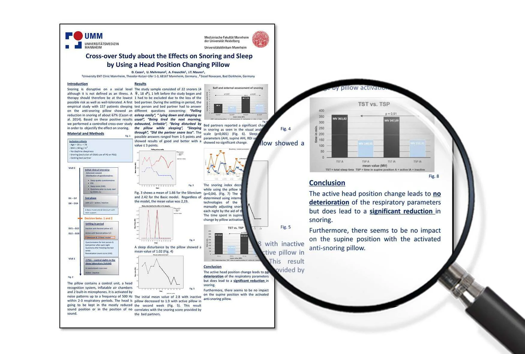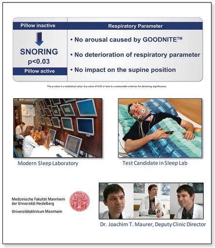 このマクラはいびきを軽減する効果があることが医学的に証明されています。しかし、無呼吸症の治療法としては確立されてないので、お使いの際は医師にご相談ください。