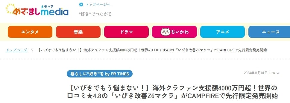 本日は、フジテレビ朝の情報番組「めざましテレビ」のWEB版でいびき改善Z6マクラが紹介された記事を紹介します。