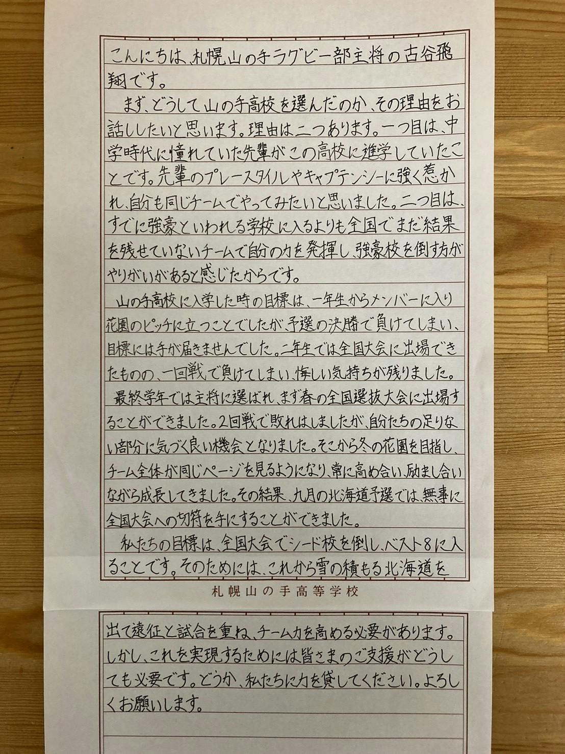 この予算は、あくまでも2回戦までを想定したもので、もしシード校を破り3回戦以降に進出した場合、さらなる追加費用が必要です。チーム一丸となって戦い、勝ち進むためには、どうしても皆様のお力が必要です。選手たちが最高のパフォーマンスを発揮できる環境を整えるため、皆様の温かいご支援をどうかよろしくお願い申し上げます。