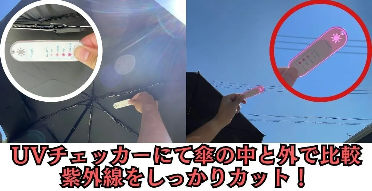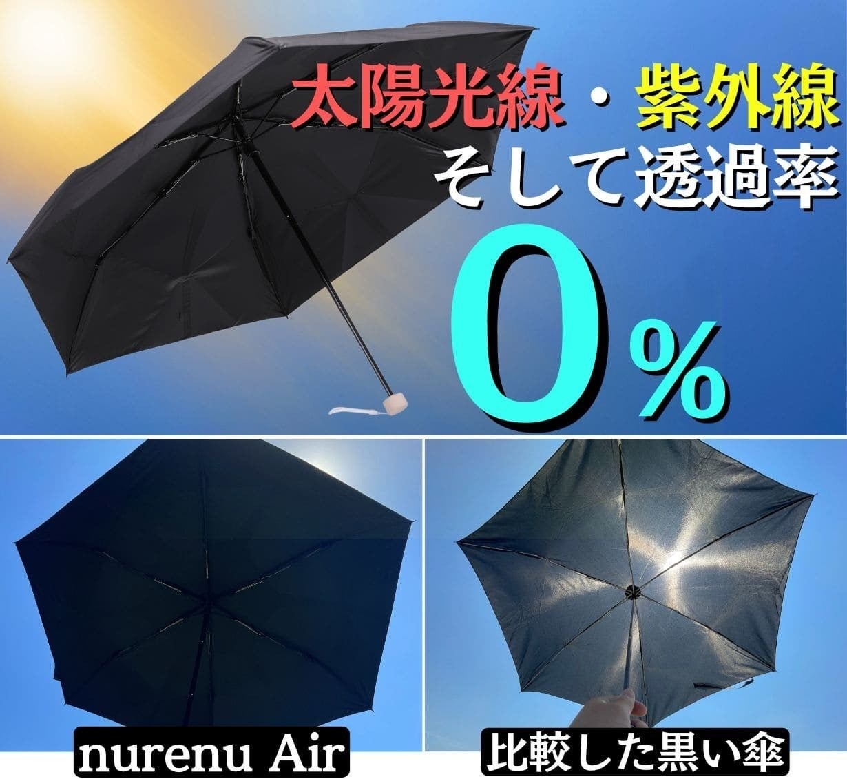 比較した傘は太陽の光が透けてしまうのに対してnurenu Airは光も通さない!