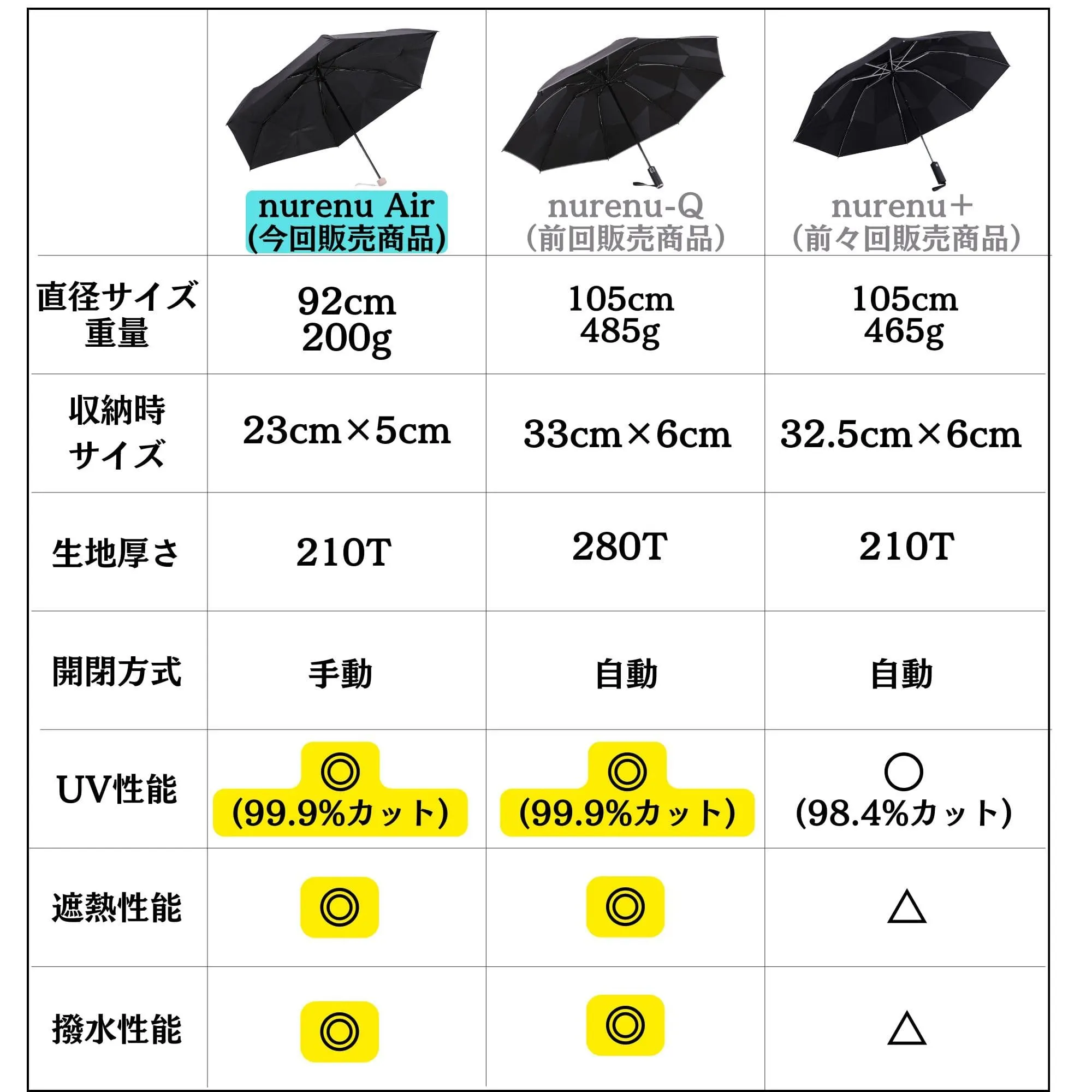 畳みやすさ、撥水力、UVカット機能はそのままに、