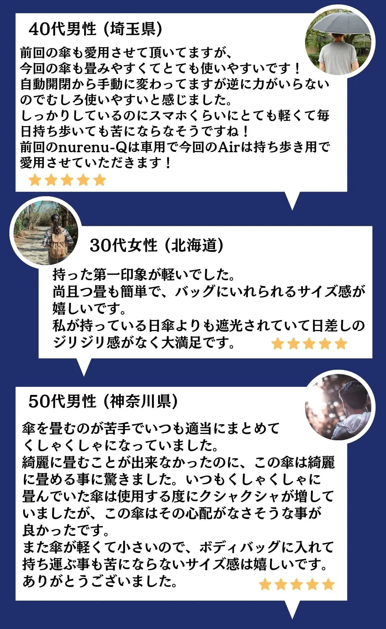 高機能な傘は本降りの日や車用として、軽量&コンパクトなnurenu Airは毎日負担なく持ち歩ける折りたたみ傘として1本備えておきませんか?