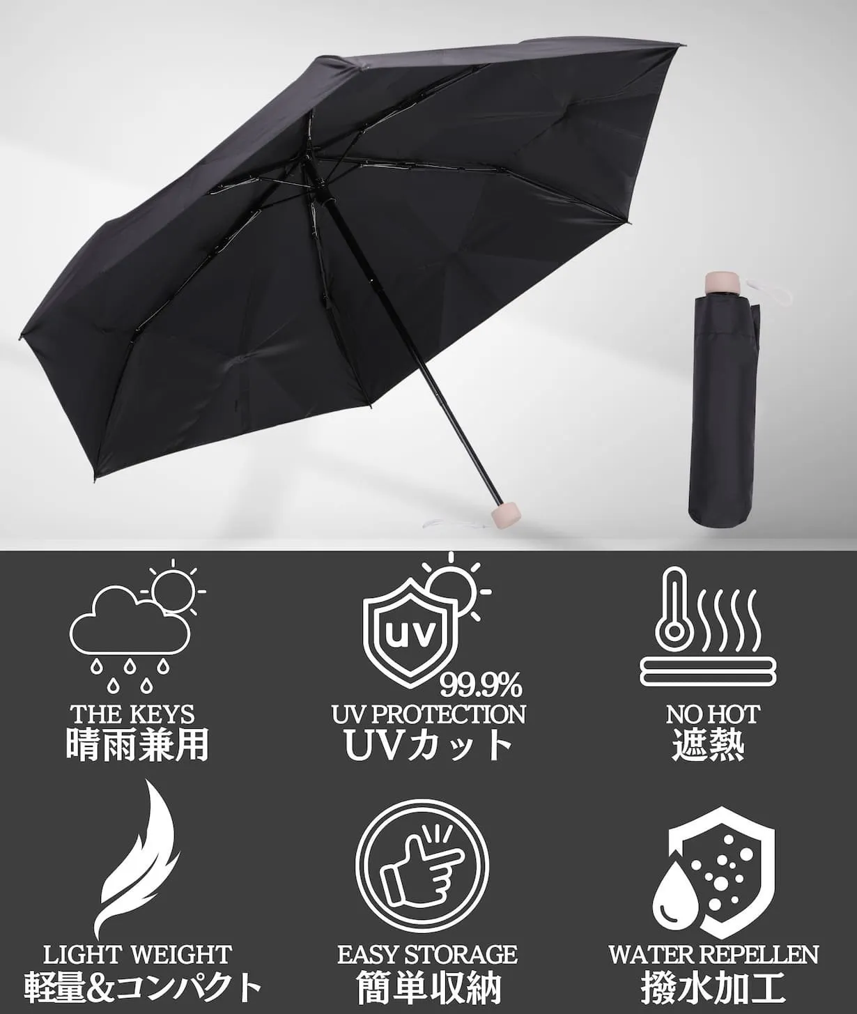 さらに紫外線や日差しによる温度上昇を抑え、暑さも和らげるから365日使用できる晴雨兼用傘です!