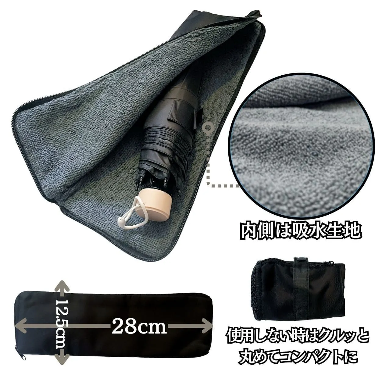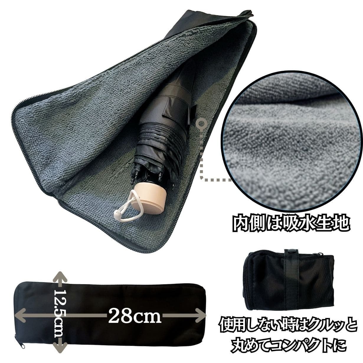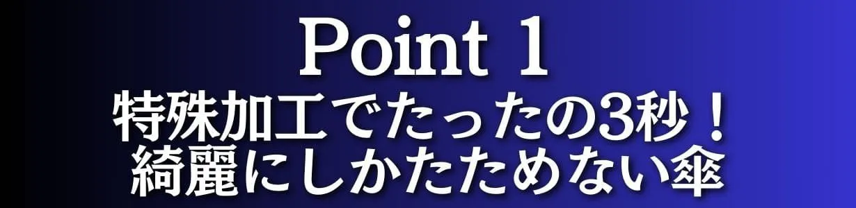 傘の内側には特殊な樹脂加工が施してあり、シワがつかず誰でも簡単に3秒程度で綺麗に収納が可能です。