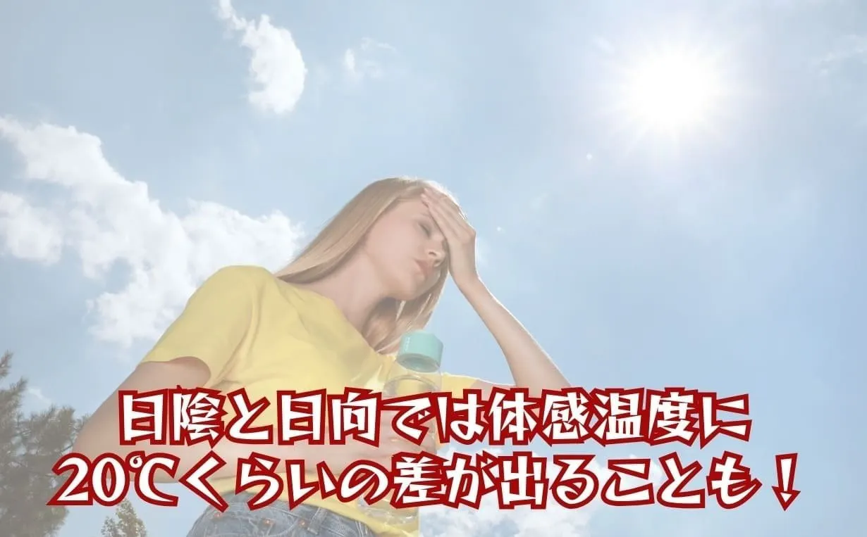 日向と日陰では気温はほぼ変わらないものの路面温度などに差があり体感温度は炎天時には20度くらい違うこともあるそうです。
