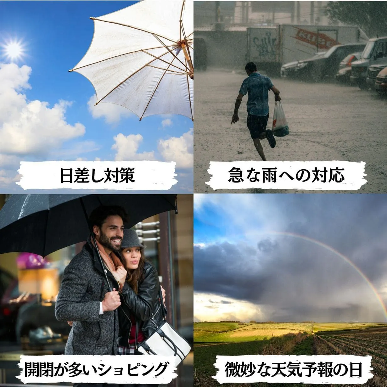 毎日降り注ぐ太陽光線や突然降る雨など365日持ち歩いても負担が少ないようたたみやすさと軽さを追求!
