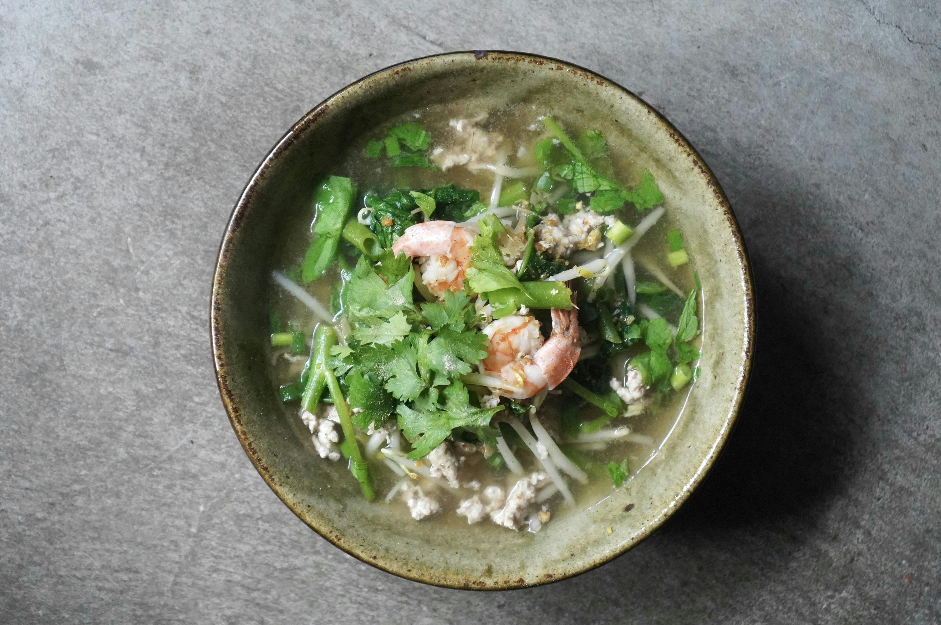 これは提供予定のタイのラーメン(クイッティアオ)。シンプルな鶏ガラベースの醤油ラーメンです。お子様からお年寄りまでどなたでも食べられるのがこの料理の魅力のひとつです。ぜひ皆さんに食べてもらいたい!後入れの調味料(ナンプラー、唐辛子、お酢、砂糖)があるので辛くしたり、酸味を足したりして自分好みの味付けにするのがタイでの食べ方です。