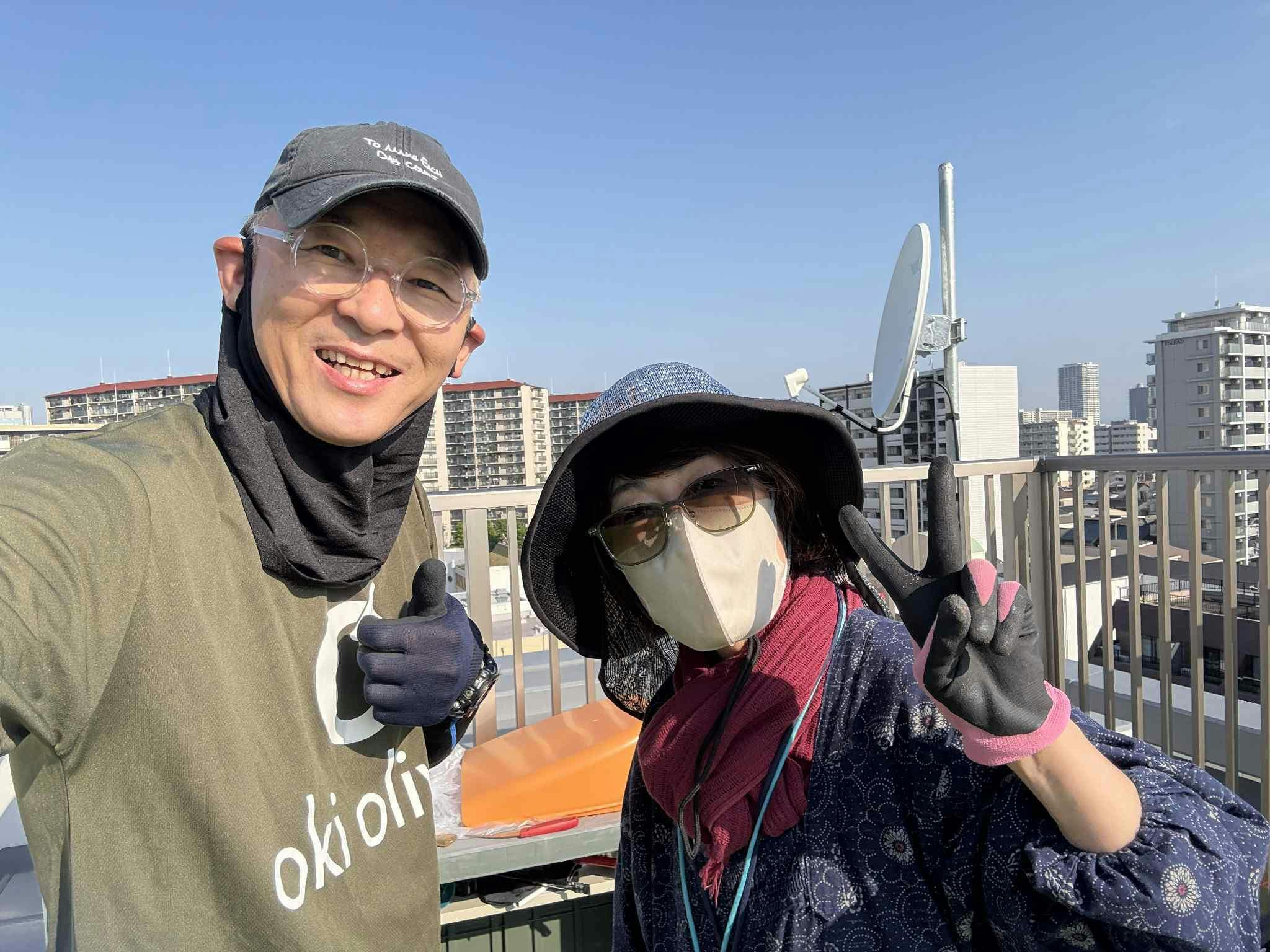 2025/06/27 23:12ふろん茶の還暦クラファン初チャレンジで『農作業のお手伝いするばい』のリターンを購入してくれた、きちぼう(吉房 睦美)のマンションの芝刈りにww暑くなる前にと、7時過ぎからスタートしたけど、真夏程には無いにしろなかなかの氣温やった。紙芝居によく出てくる、「おじいさんは山に柴刈りに」とは違うとばいきちぼうのマンションの屋上はドッグランも可能で、裸足で氣持ちよか全面天然芝なのだ。住人の方々に解放したり、たまにご近所さん向けにこの屋上の天国でイベントしたりしてる。障害物が無いところは、きちぼうがマキタの電動芝刈り機で刈って、ヘリや障害物の周りは、ふろん茶がトリミング鋏で、チョキチョキ、チョッキン、チョッキンなー明日が紙芝居の日で無くて良かったー右手の握力がヤバい状態にww3〜4日すればもとにもどるとは経験済みで。2週間後ぐらいにまたお願いねと、お仕事としてオファー頂きました もっと見る