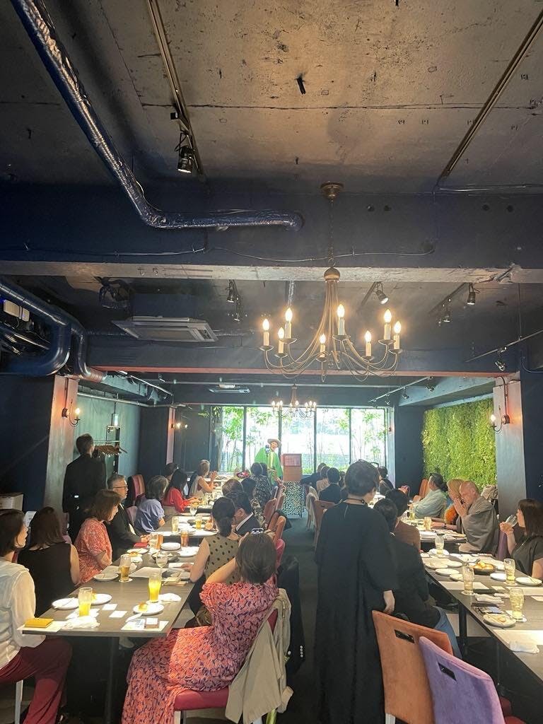 起業長屋の 女将こと藤井晶子さんの古希バースデーパーティーで、美味しい料理とお酒、加えて紙芝居をする機会を頂きました。女将 おめでとうございます㊗そして、ありがとうございます。ふろん茶の還暦クラファン初チャレンジで、紙芝居の口演権を支援してくださり、日本文化である紙芝居を、ふろん茶の紙芝居をご自分の大事な友人たちにも紹介したいからと言って下さり、今日の運びとなりました。言うときますよ〜!ふろん茶の紙芝居の後は、能楽師   寺澤幸祐師と能楽小鼓方 久田陽春子師お二人による おめでたい席で披露される謡「高砂」を生で聴く事が出来ました。共通項は「日本文化」「生音」「生声」出席者全員での「高砂」も貴重な体験でした。出席者は全員起業家の方々やったけど、紙芝居に触れたら、みんなあっという間に、童心を思い出して大笑い。ニコ朝のメンバー、郁さん、島ちゃん、あやPも盛り上げてくれて、アンディも初めて観たと大笑いしとった。いや〜 大人ばっかりでも楽しかね〜しっかり30分以上のお時間頂き口演した演目は①小話昔話②シルエットクイズ③魚人姫④ももももももたろう⑤妖怪おおあばれ帰りはお土産まで頂いて帰りましたとさ㊗