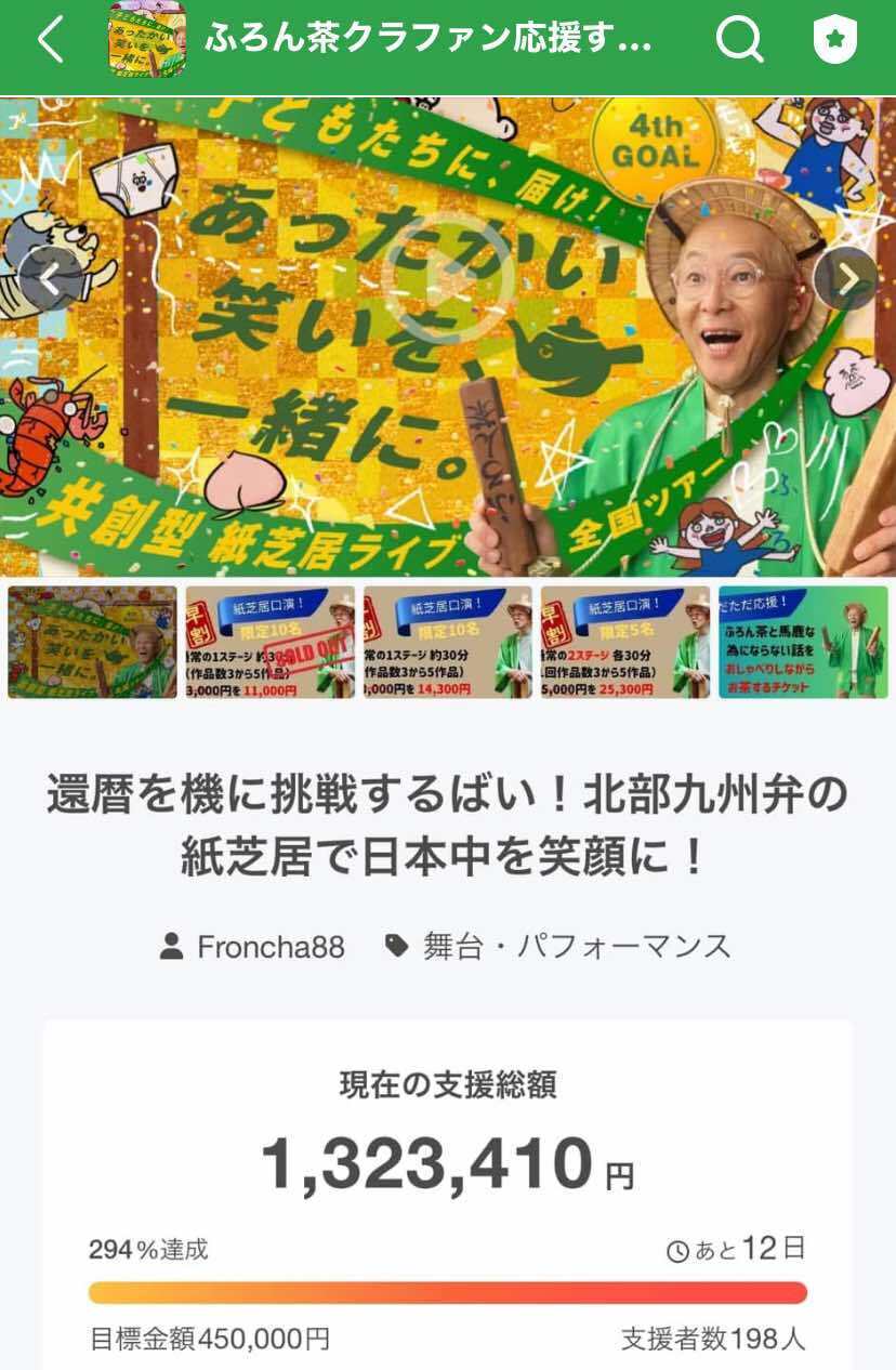 還暦になりました。元氣なうちにふろん茶の紙芝居を全国に届けたか!そんな旅芸人みたいな生活は、これから10年もできるかわかりません。もしかしたら明日で終わるかもしれません。今のうちにふろん茶の紙芝居を全国各地に届けるための出張口演の旅費・宿泊費を支援してください。