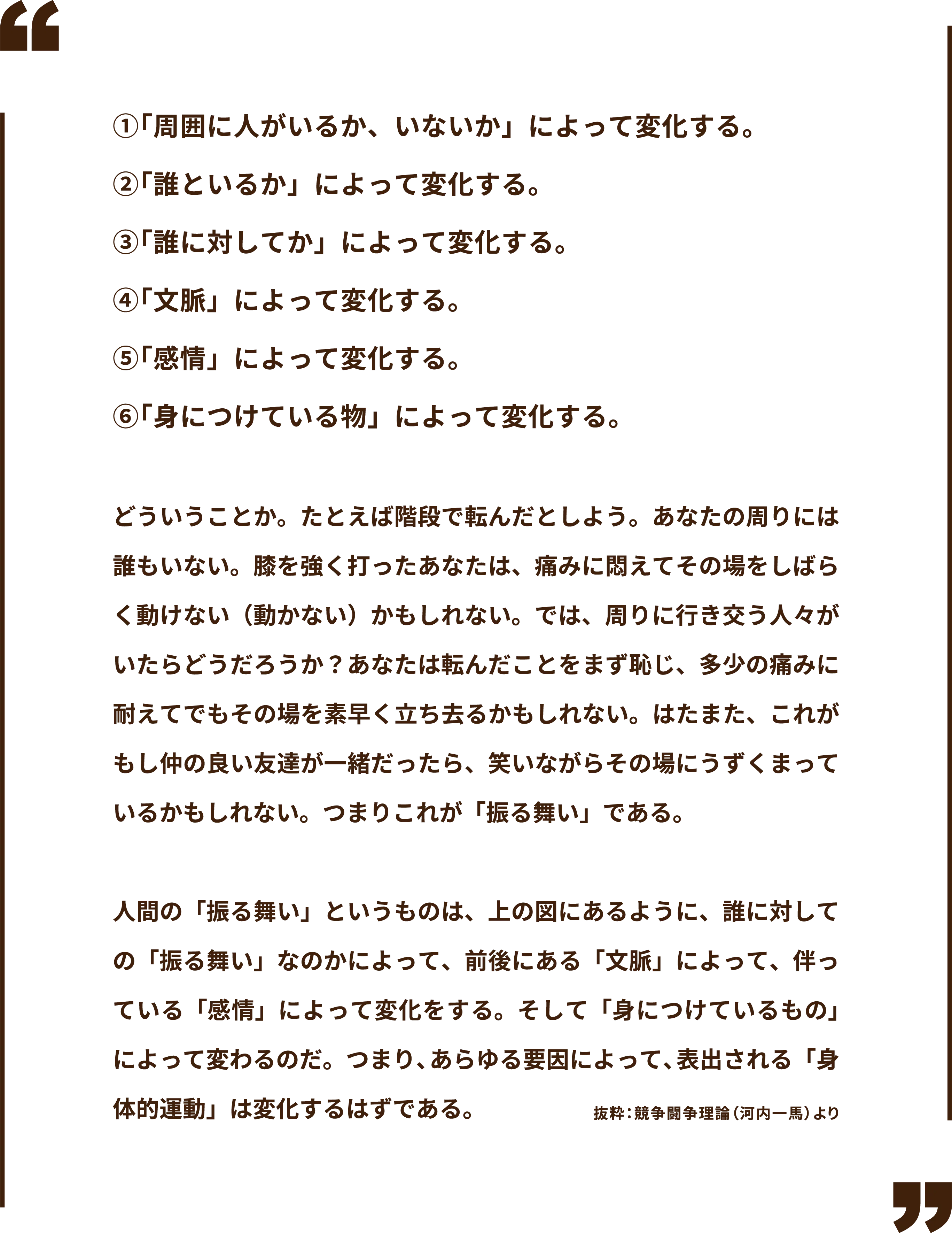 つまりサッカークラブは「振る舞い(Bhavior)」は『⑥「身につけている物」によって変化する。』という事を理解しなければならないという事です。
