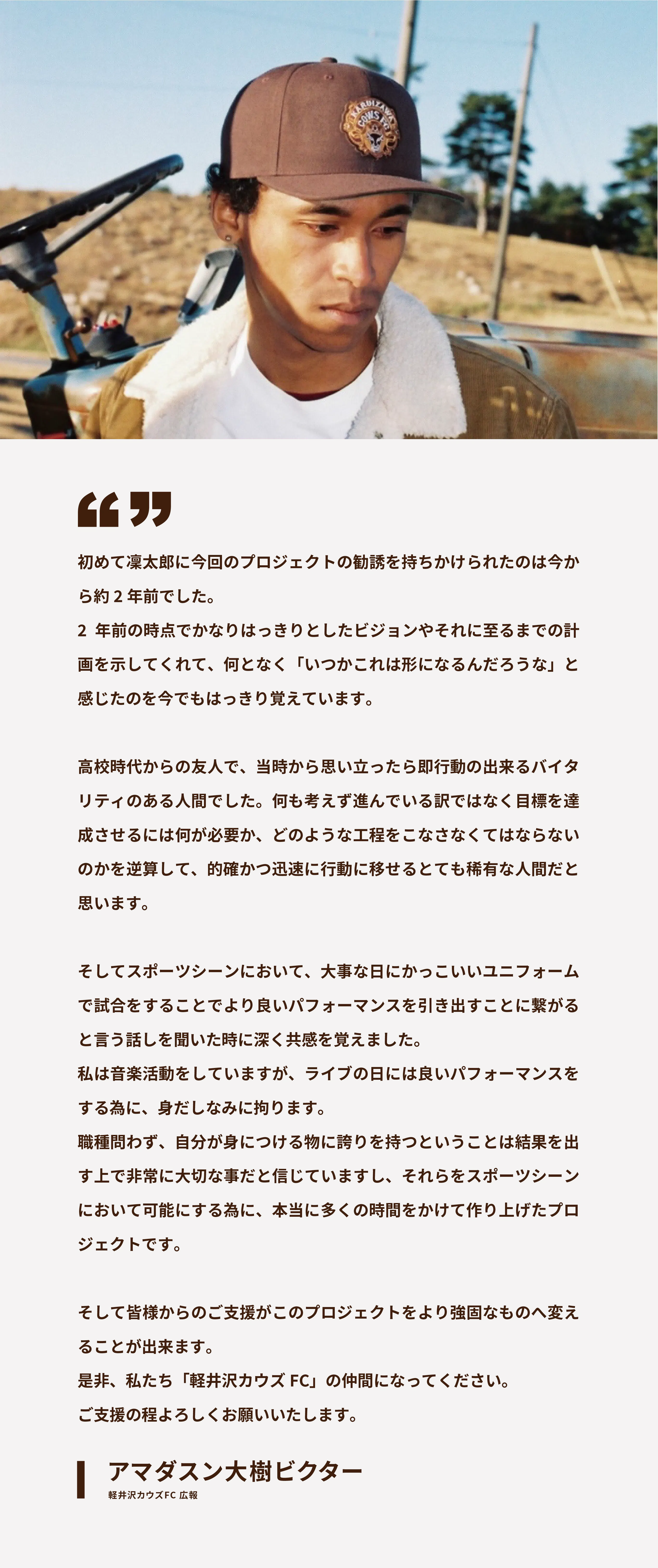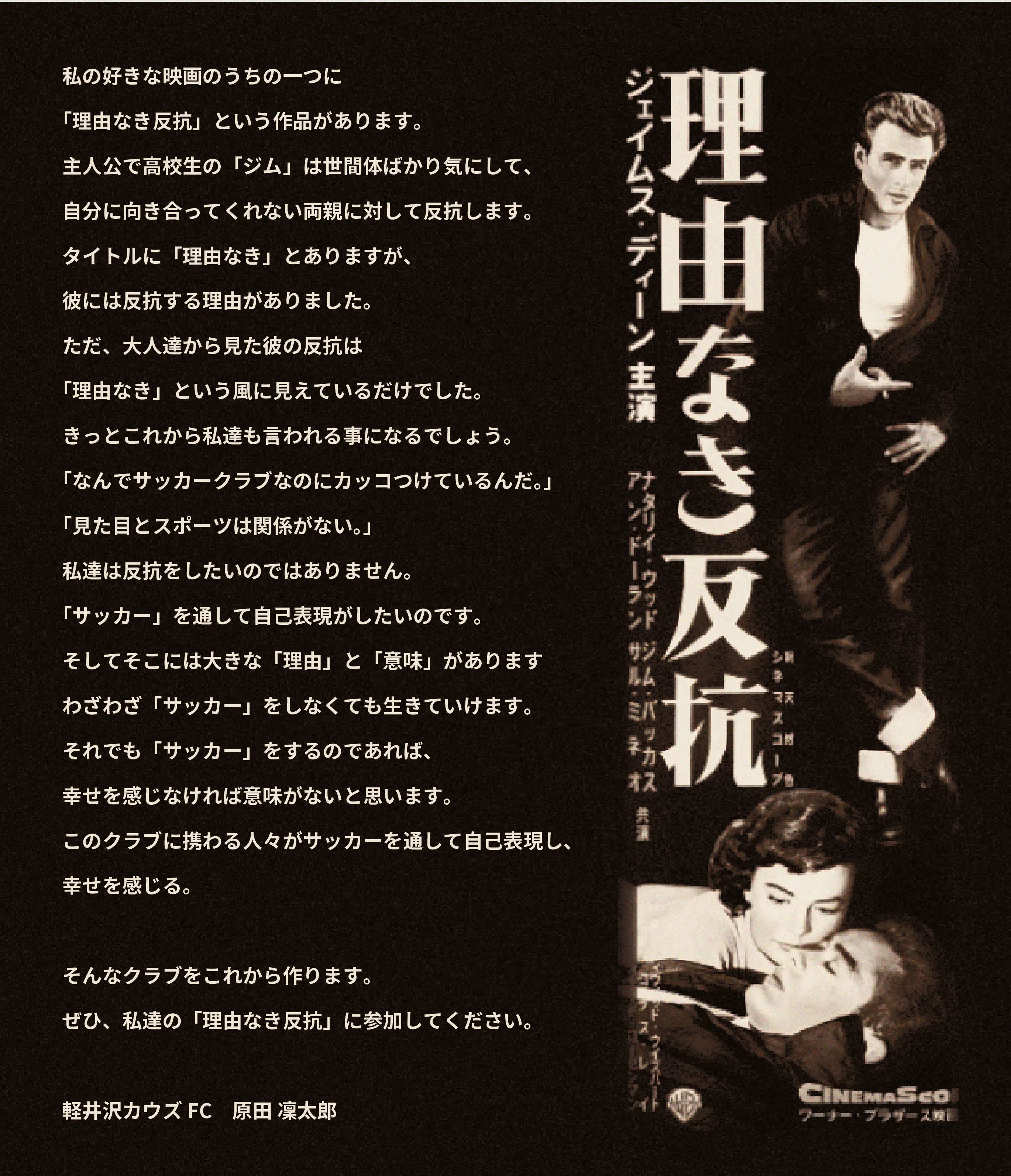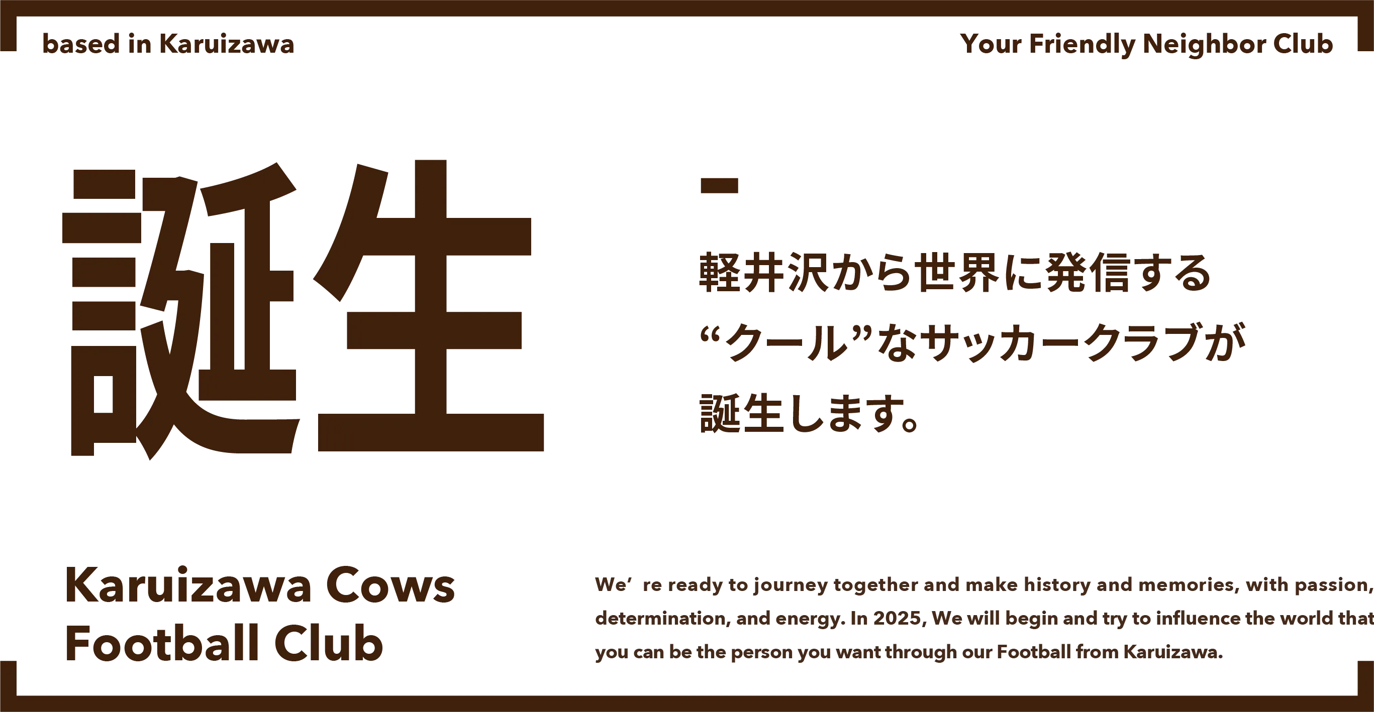 皆さんは海外のスポーツシーンやサッカークラブを見て『カッコいい…』と憧れたことはありますか?私たちは、それを軽井沢で実現します。私達は軽井沢を本拠地とする社会人サッカークラブ【Karuizawa Cows Football Club(軽井沢カウズFC)】を、設立し、世界のスポーツシーンを牽引する“クール”なサッカークラブを目指します。